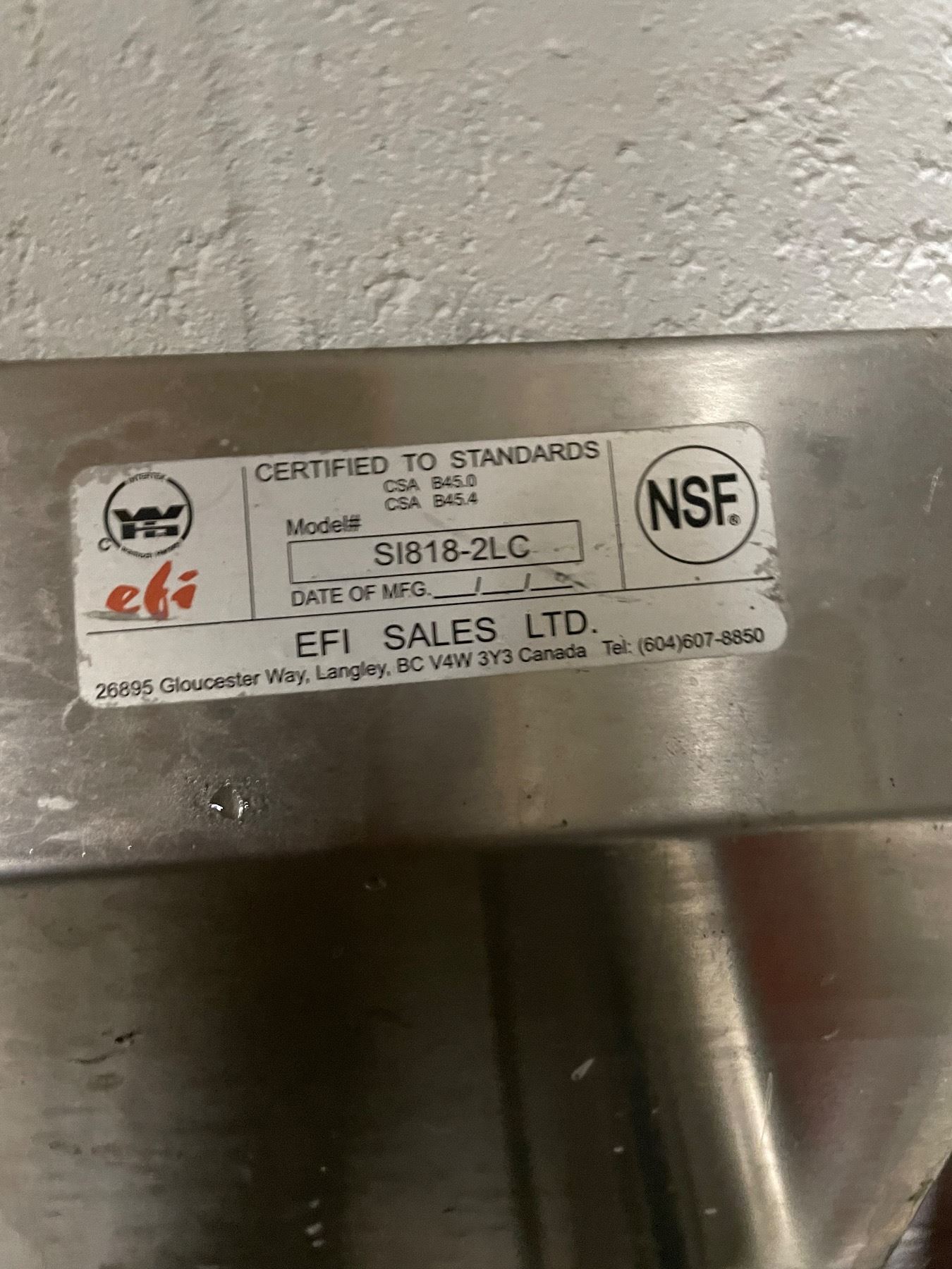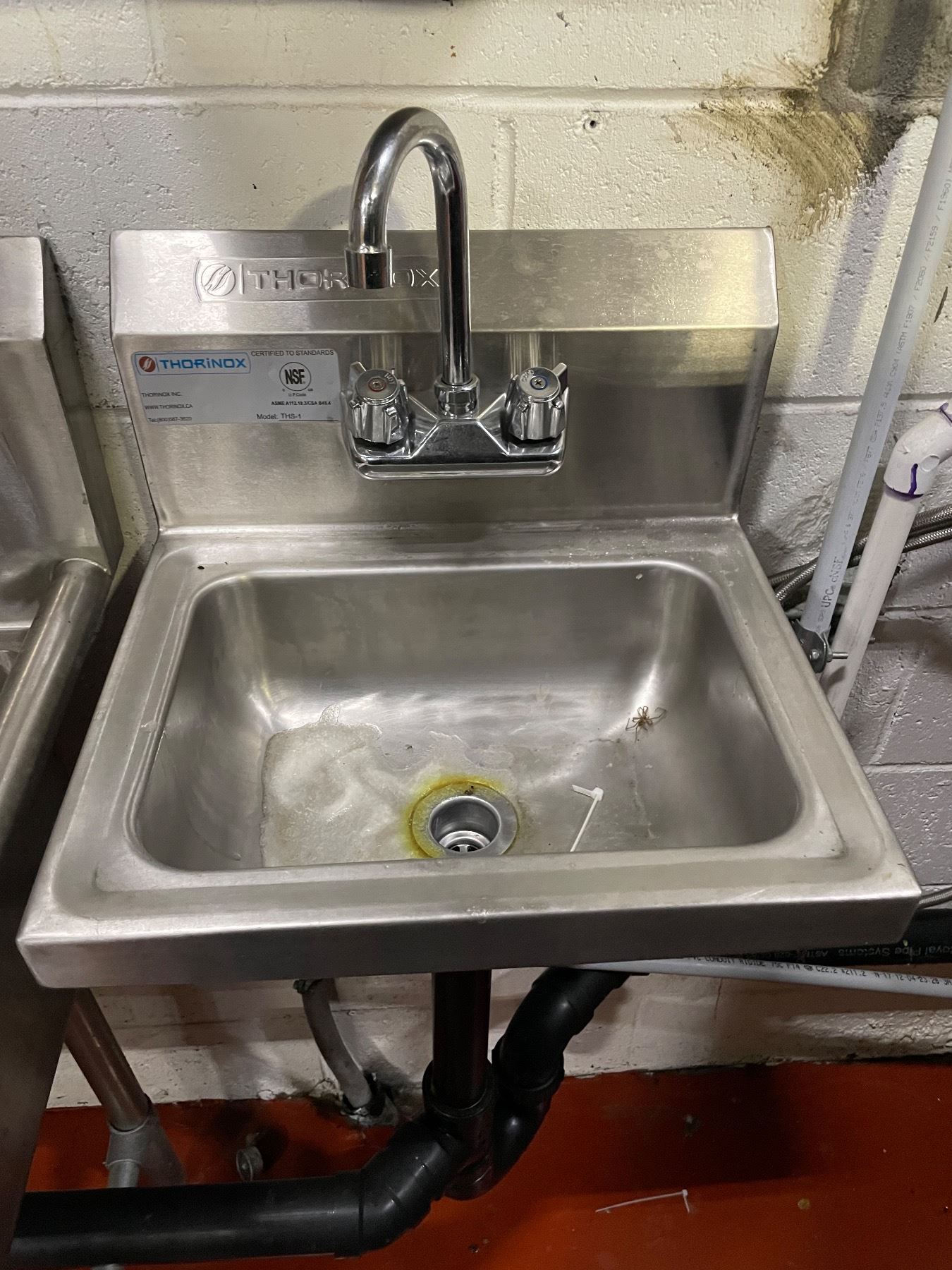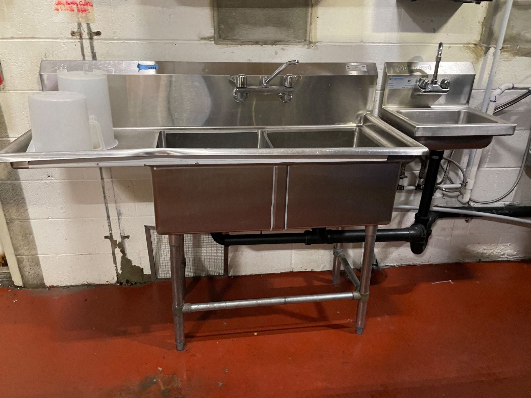 EFI SI818-2LC 18" x 18" x 11" Center Drain Two Compartment Sink With Left Drain Board with faucet & Thorinox THS-1-F 17" x 16" Wall Mounted Hand Sink With Faucet