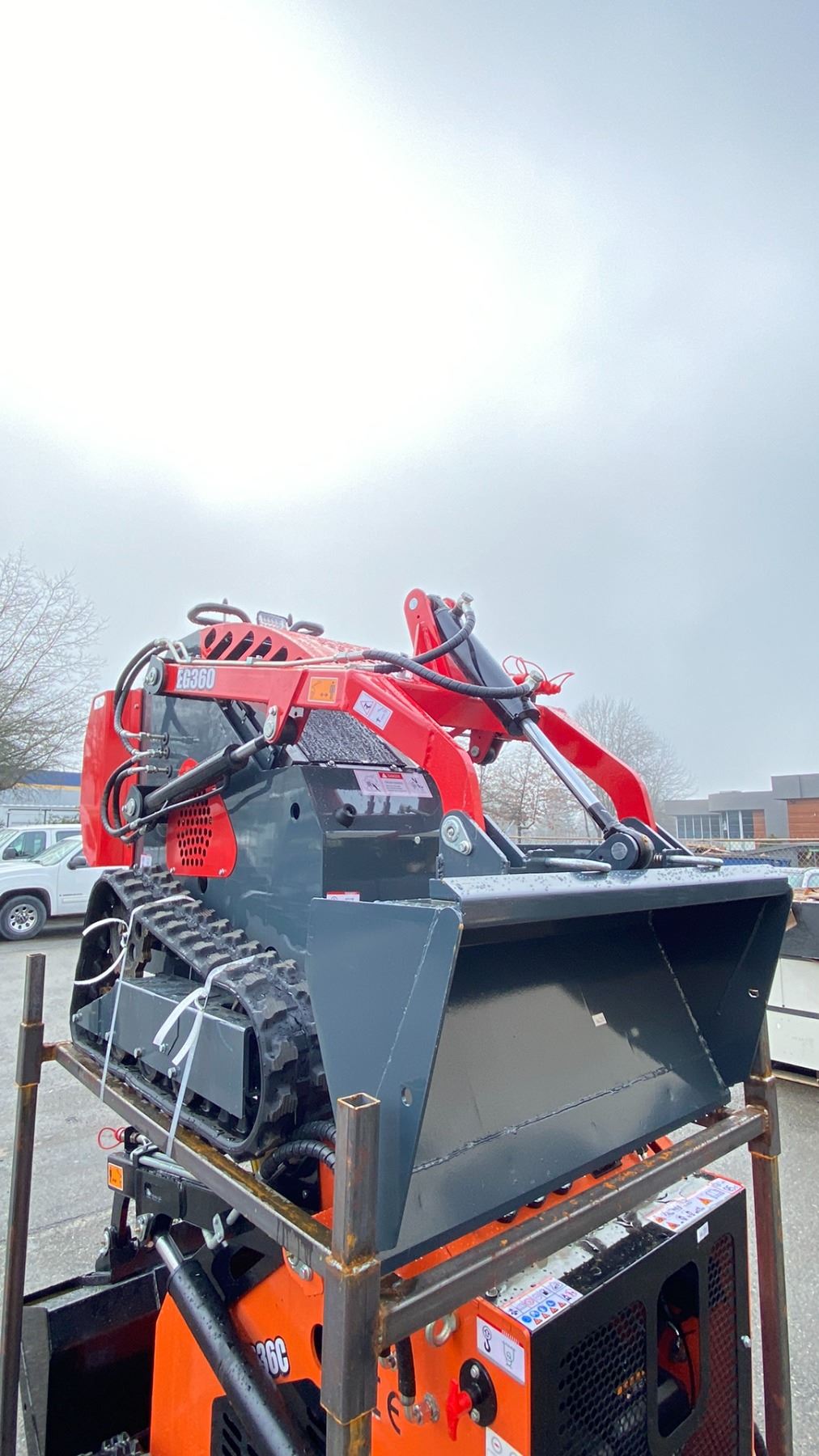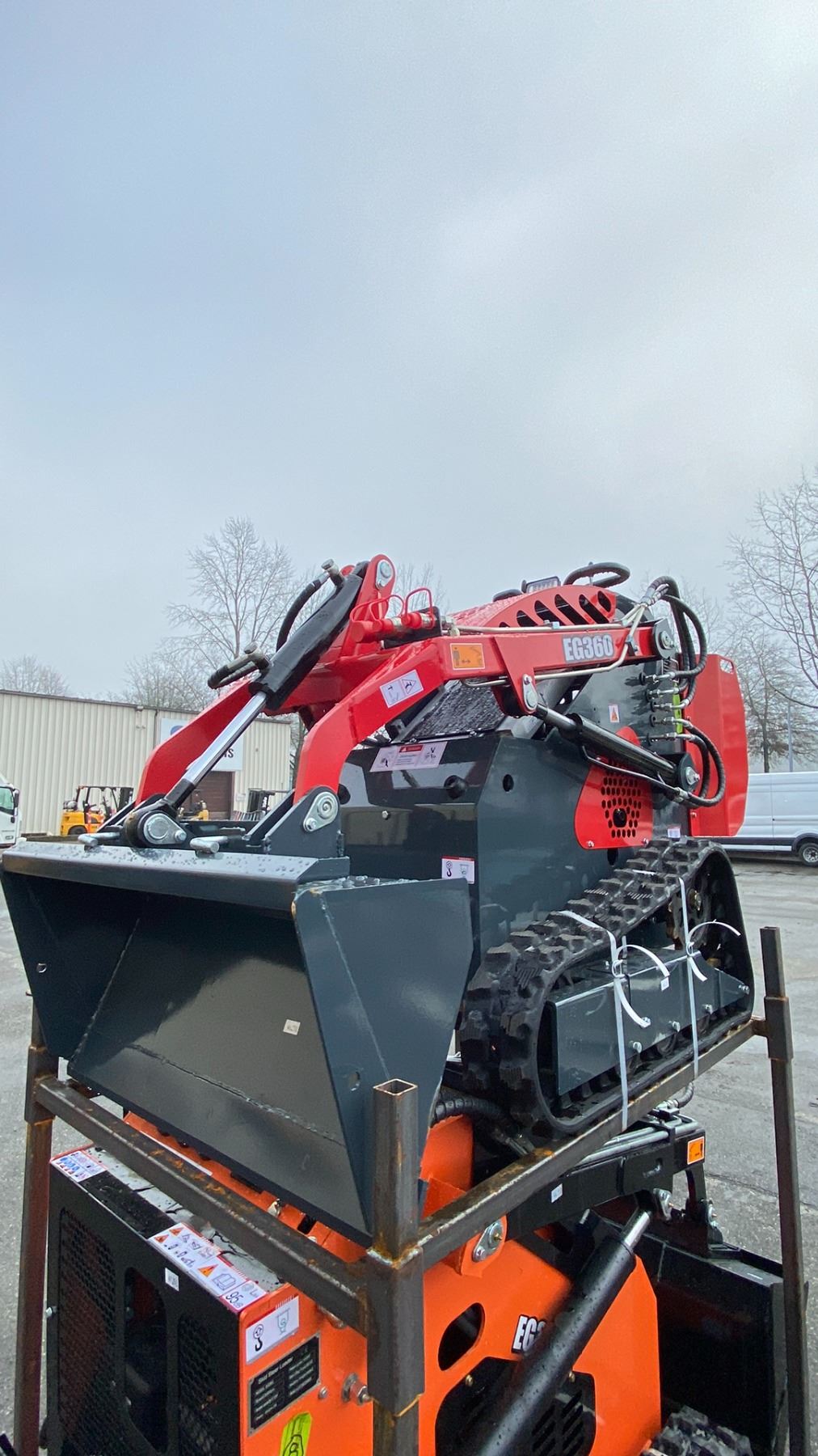 EGN EG360 RED 420CC GAS POWERED RUBBER TRACK RIDE ON HYDRAULIC MINI SKID STEER/LOADER WITH 37" W BUCKET AND BUCKET CAPACITY OF 0.06M3 & KEYS ( NO MINI TOOL KIT ) *MEETS CANADIAN EMISSIONS CONTROL REGULATIONS*