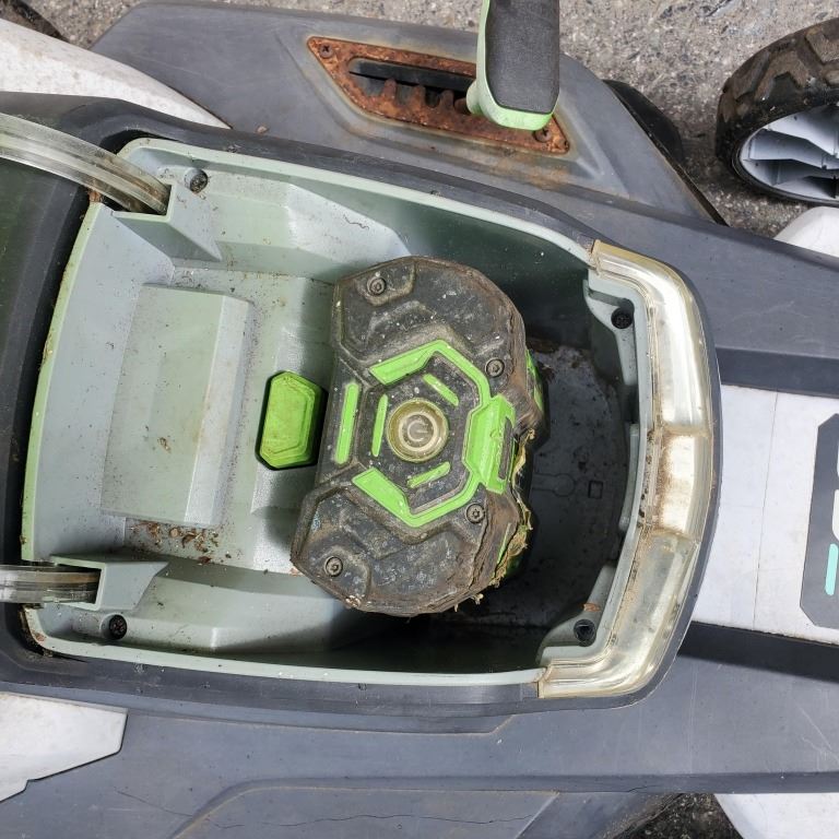 EGO ELECTRIC LAWNMOWER WITH BATTERY, NO CHARGER, UNKNOWN CONDITION