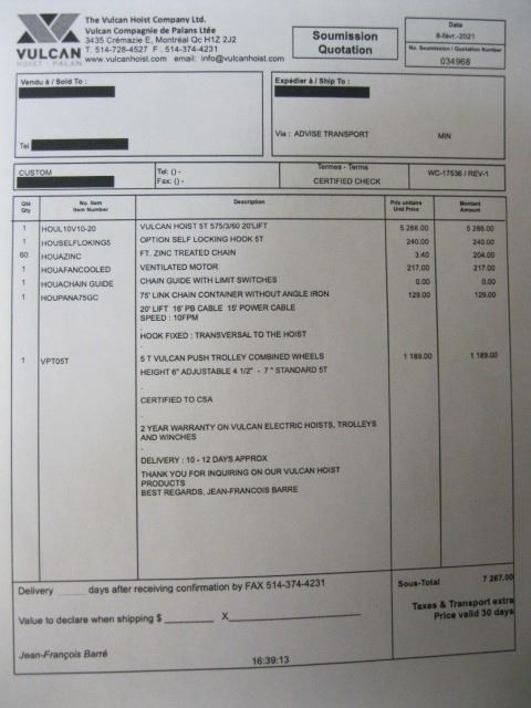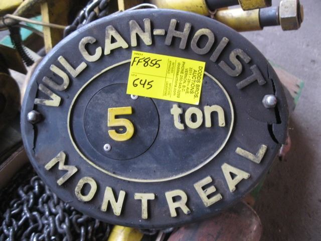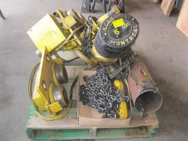 ELECTRIC 5 TON VULCAN OVERHEAD CHAIN HOIST WITH MOVING TRACK ROLLER,REPLACEMENT WITH TAX OVER $7000
