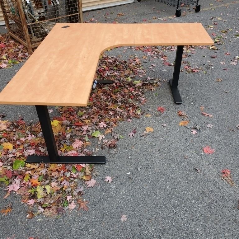 ELECTRIC ADJUSTABLE HEIGHT CORNER DESK WITH 4 PRESETS WORKING 65" X 23.5" AND 37.5" CORNER TO CORN