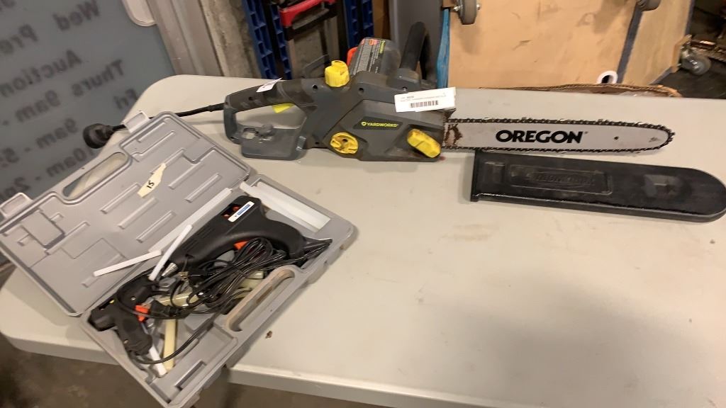 ELECTRIC CHAINSAW CHAINSAW AND GLUE GUN BOTH WORKING