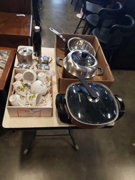 ELECTRIC COOKER, STEAMER, PAN, CREAM AND SUGARS, CUPS AND WATER BOTTLE