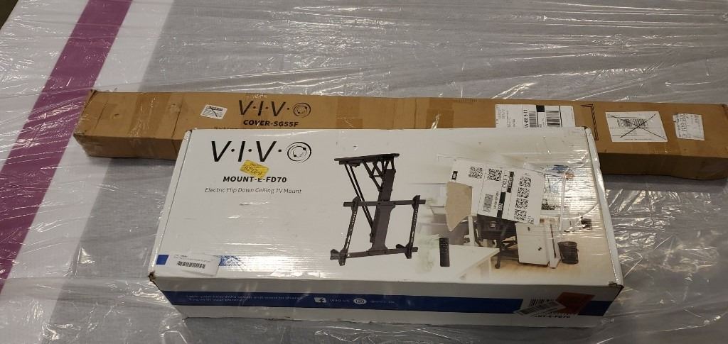 ELECTRIC FLIP DOWN CEILING TV MOUNT AND BLACK SAMSUNG TV FRAME