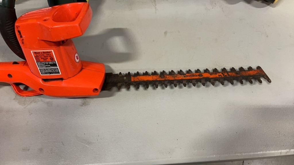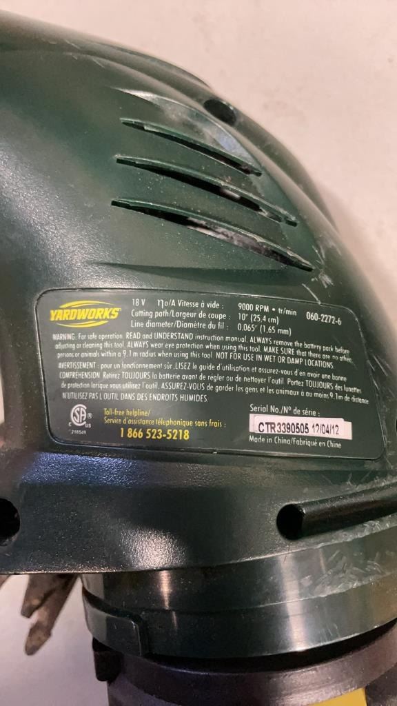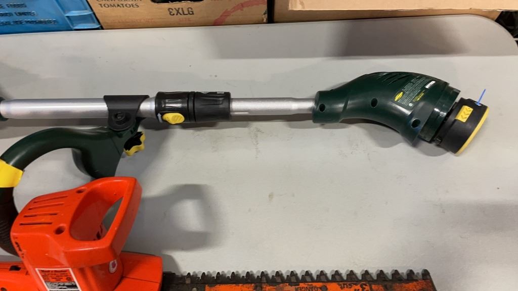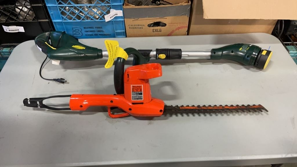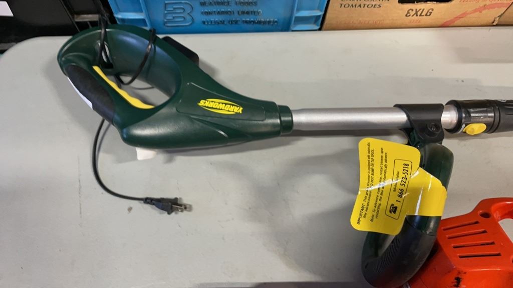 ELECTRIC HEDGE TRIMMER AS-IS AND YARDWORKS ELECTRIC GRASS TRIMMER TURNS ON, AS-IS