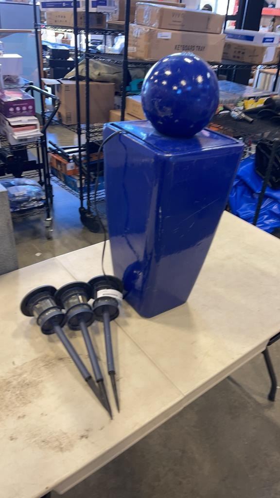 ELECTRIC WATER FOUNTAIN AND 3 SOLAR LIGHTS