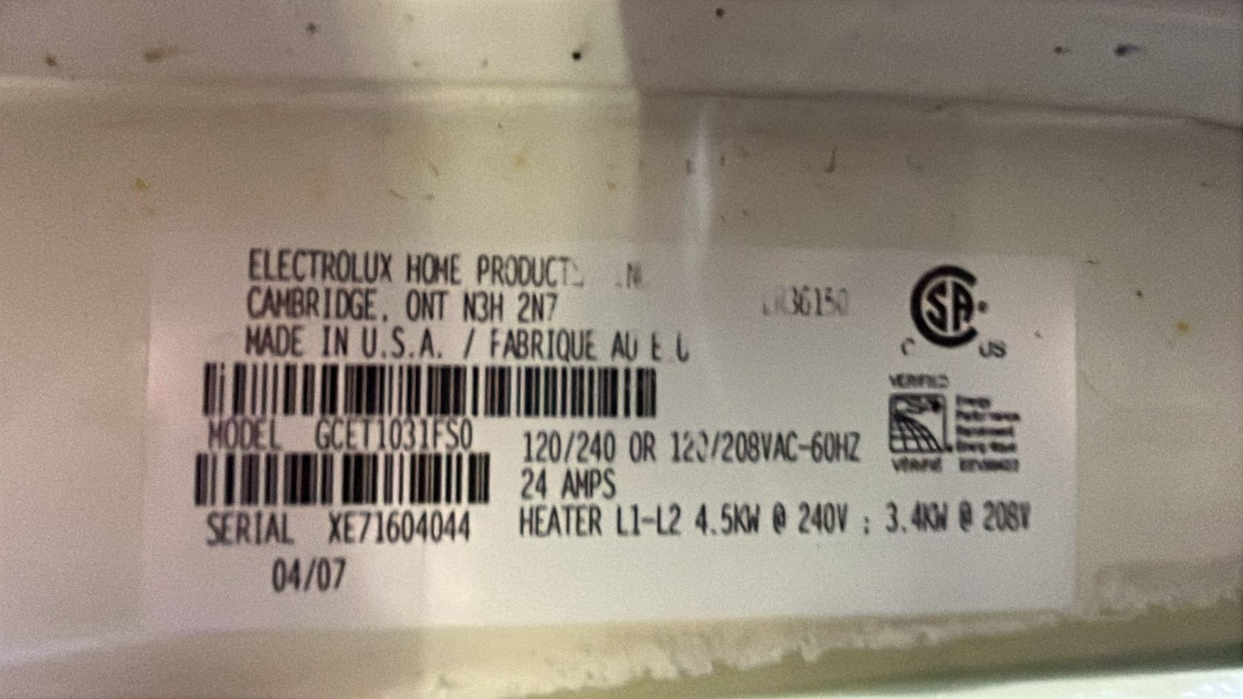 ELECTROLUX 27"W STACKING CLOTHES WASHER & DRYER