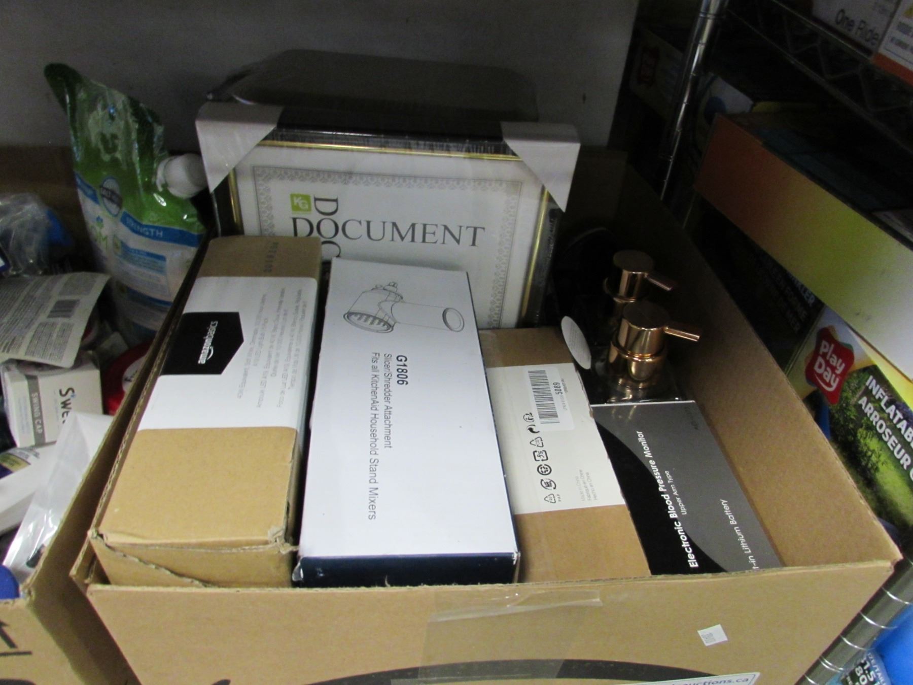 ELECTRONIC BLOOD PRESSURE MONITOR, STAINLESS STEEL STEP CAN, LIGHT BULBS, SOAP DISPENSERS, SMALL IRON, ETC