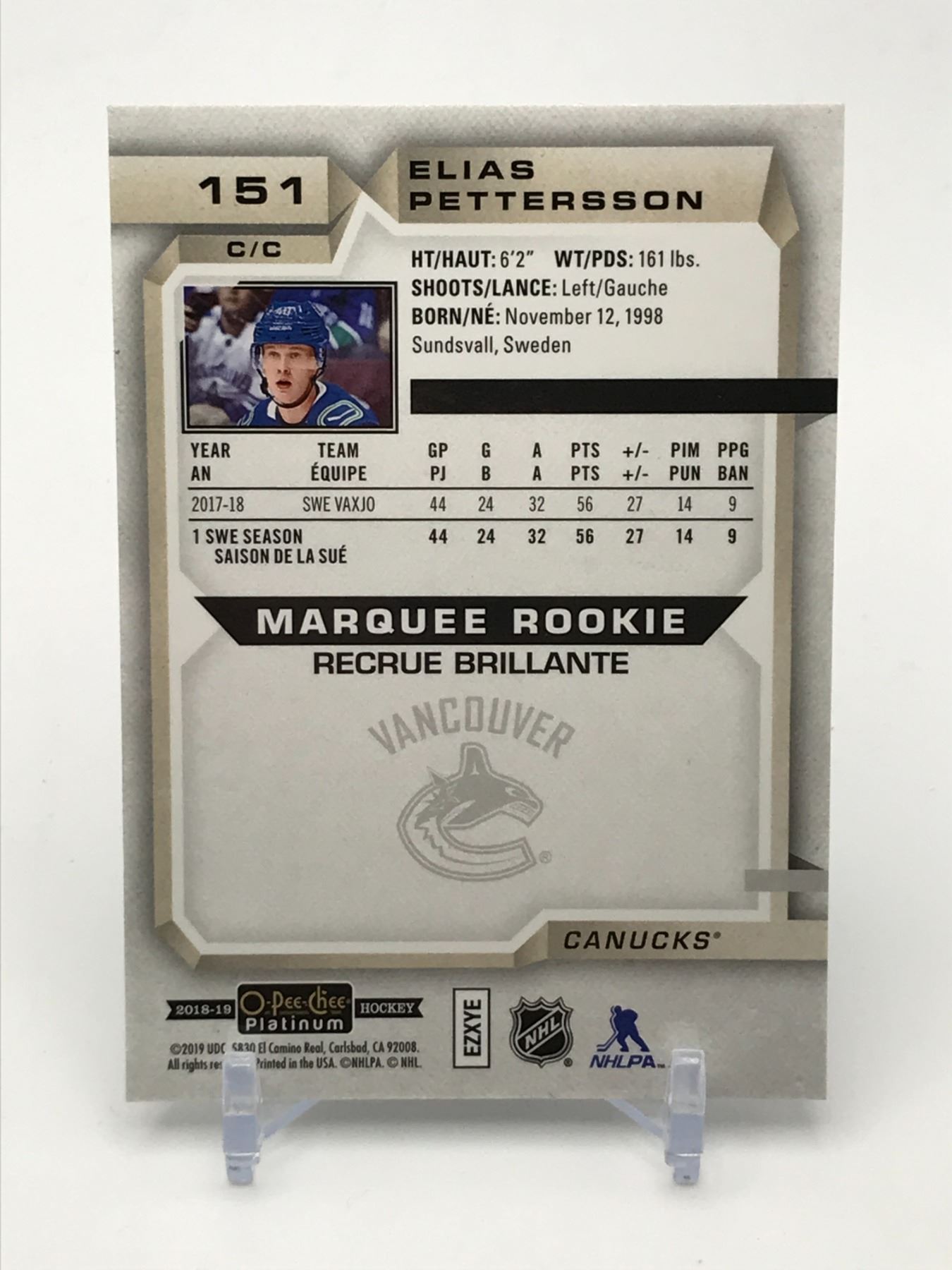 ELIAS PETTERSSON SIGNED TRADING CARD