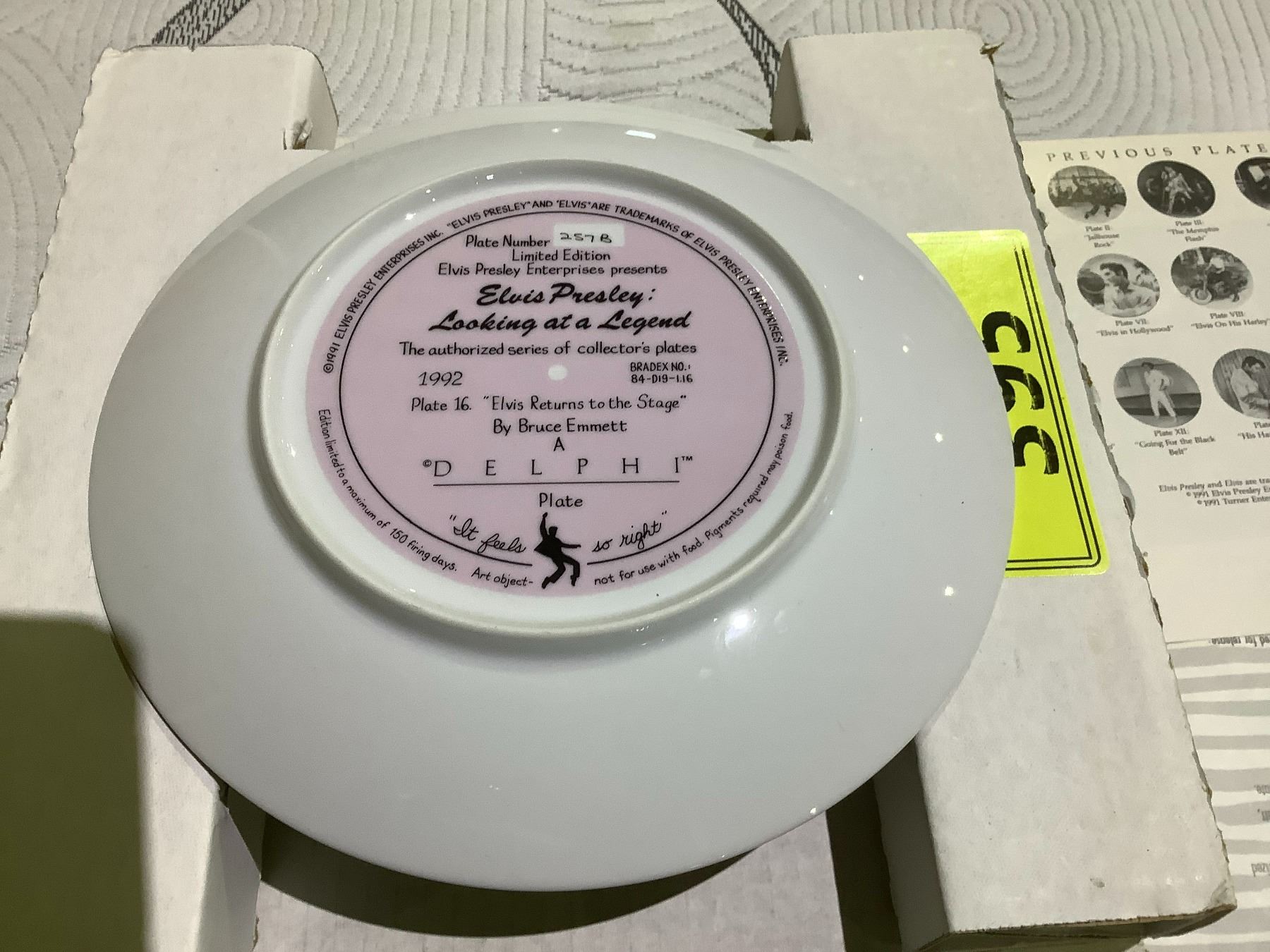 ELVIS PRESLEY LOOKING AT A LEGEND PLATE 16 "ELVIS RETURNS TO THE STAGE" LIMITED EDITION COLLECTIBLE PLATE WITH COA
