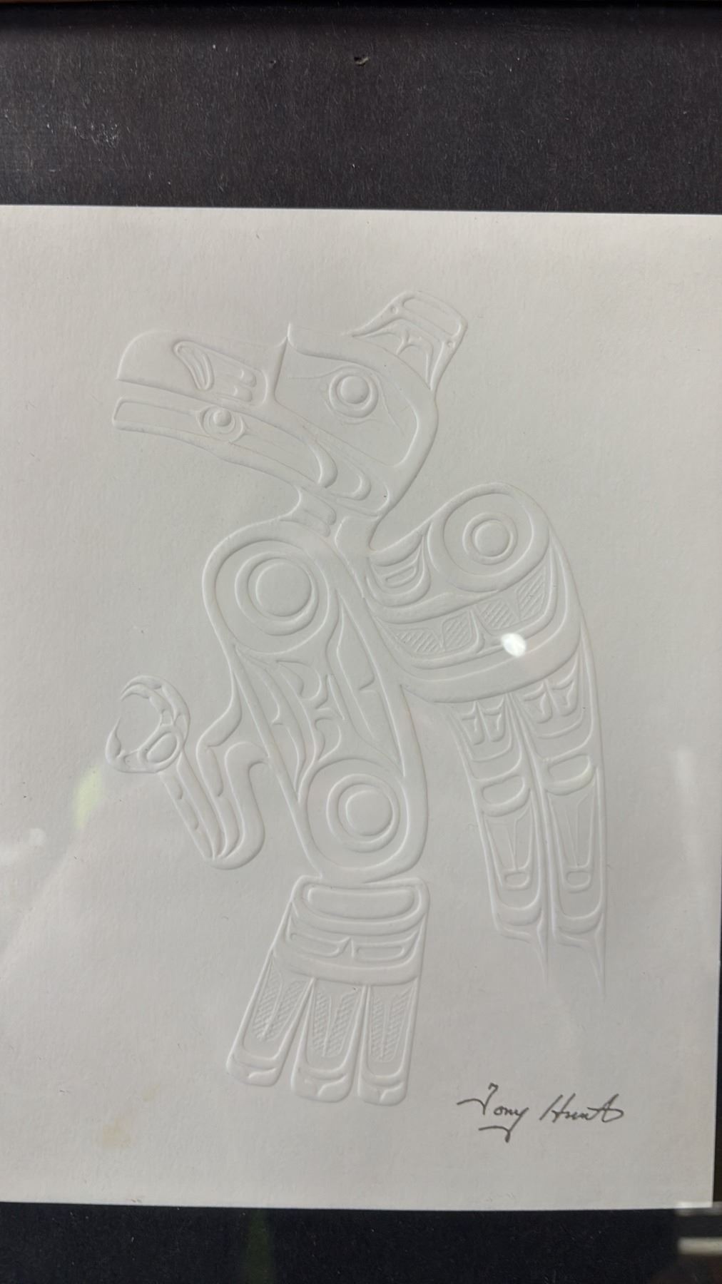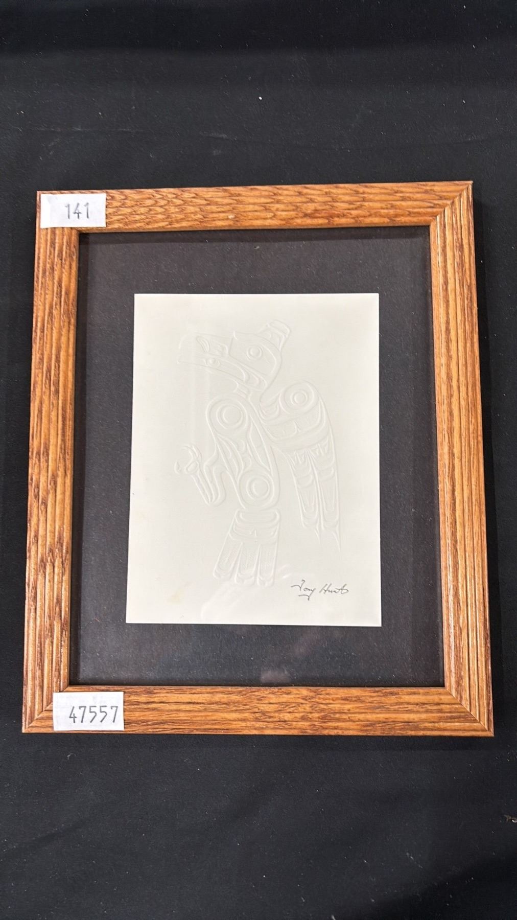 EMBOSSED FRAMED NATIVE ARTWORK SIGNED BY TONY HUNT - 9 1/2"W X 11 1/2"H