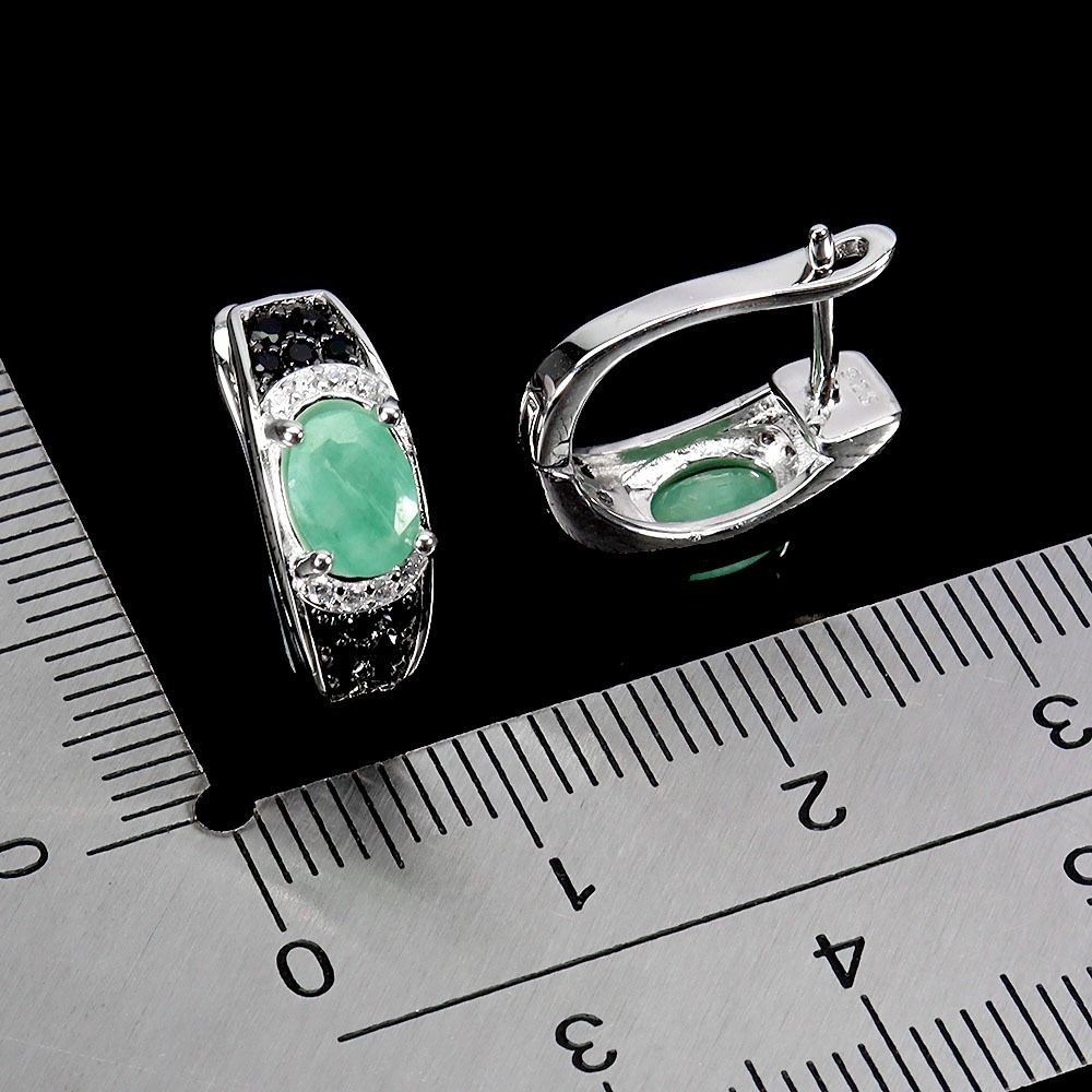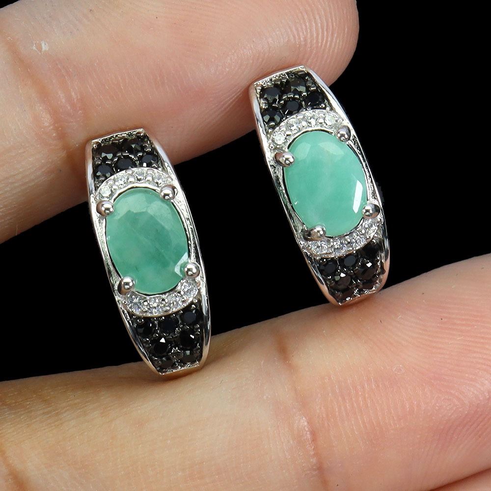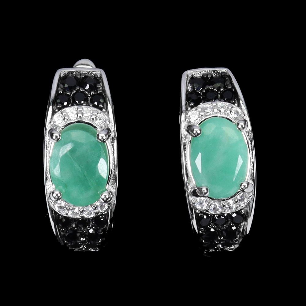 EMERALD AND BLACK SPINEL EARRINGS EMERALD BUTTERFLY SHAPPED NECKLACE IN 14K WHITE PLATED GOLD OVER 925 STERLING SILVER - APPRAISED REPLACEMENT VALUE