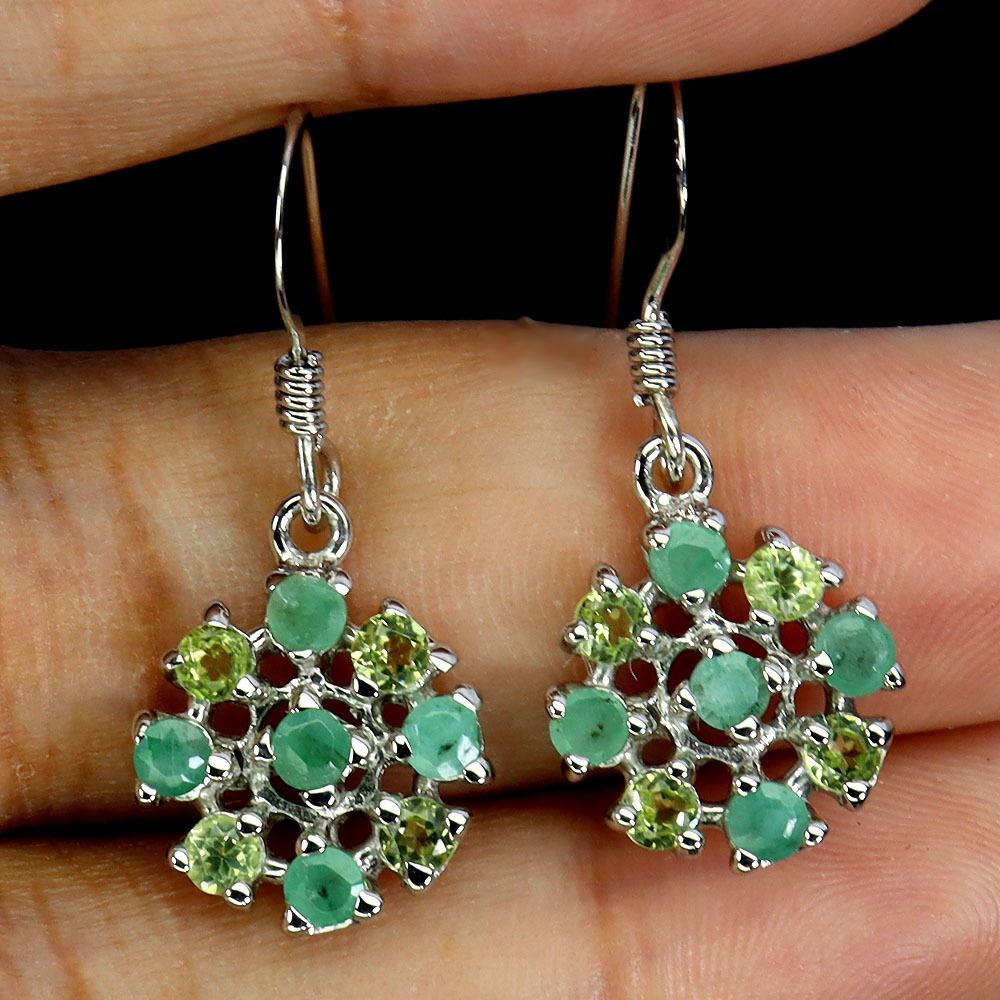 EMERALD AND PERIDOT EARRINGS IN 14K WHITE PLATED GOLD OVER 925 STERLING SILVER - APPRAISED REPLACEMENT VALUE