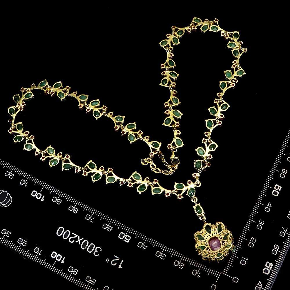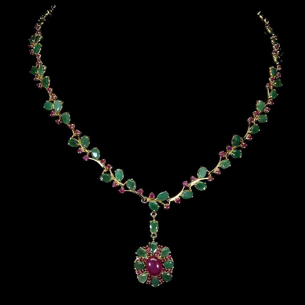 EMERALD AND RUBY NECKLACE IN 14K YELLOW PLATED GOLD OVER 925 STERLING SILVER - 17.5 INCHES LONG - APPRAISED REPLACEMENT VALUE