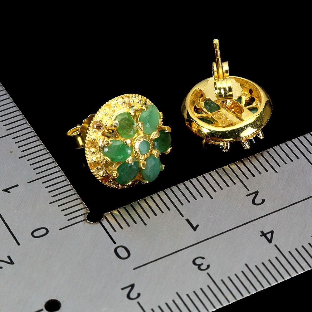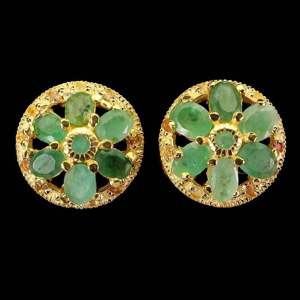 EMERALD AND SAPPHIRE EARRINGS IN 14K YELLOW PLATED GOLD OVER 925 STERLING SILVER - APPRAISED REPLACEMENT VALUE
