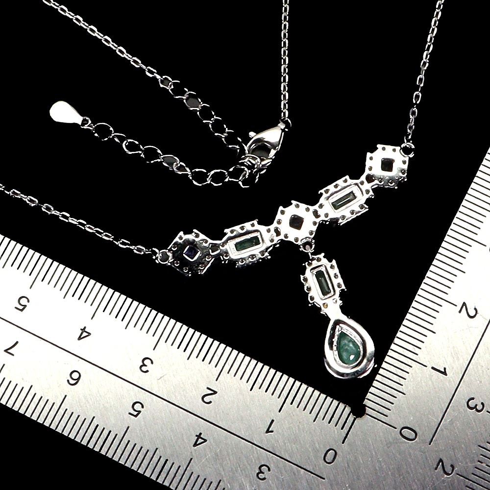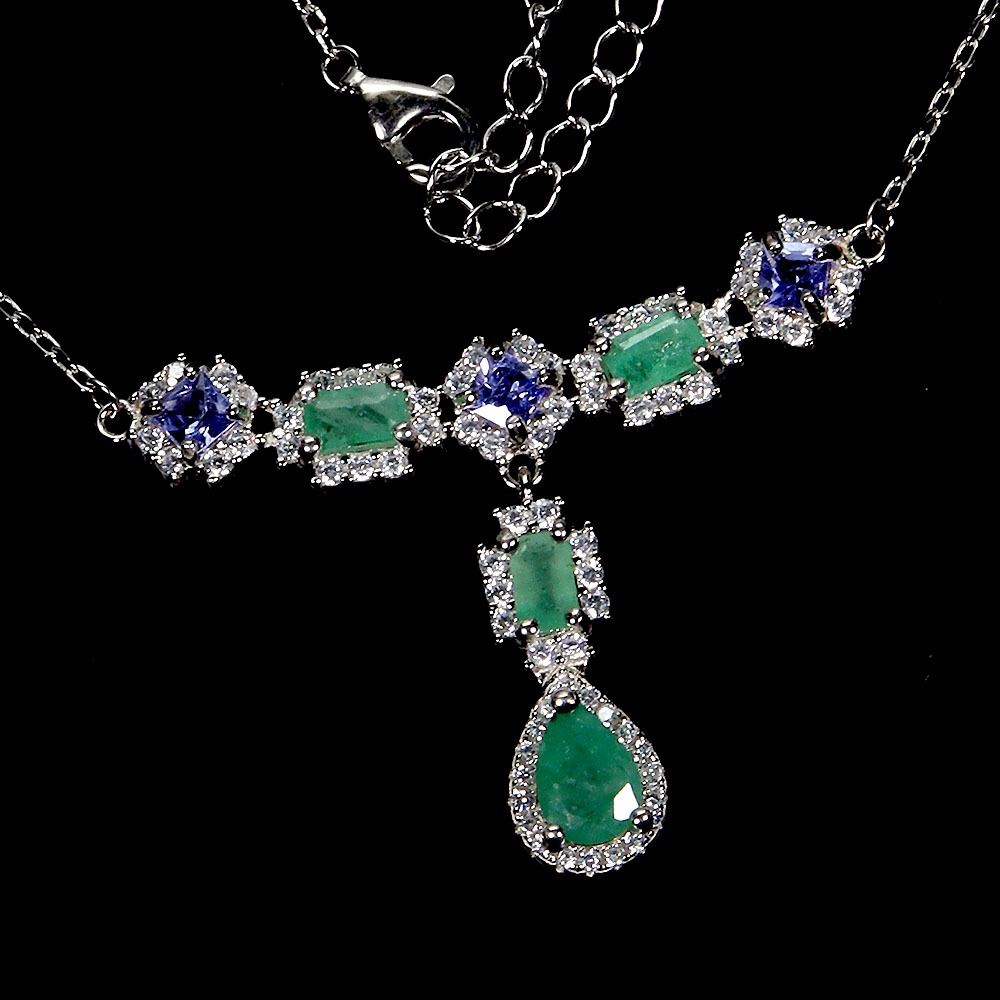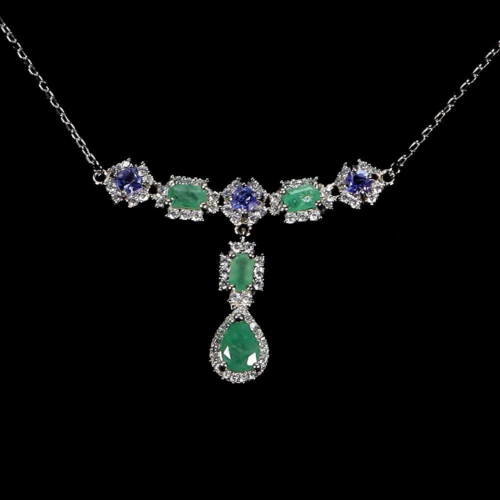 EMERALD AND TANZANITE NECKLACE IN 14K WHITE PLATED GOLD OVER 925 STERLING SILVER - 19 INCHES - APPRAISED REPLACEMENT VALUE