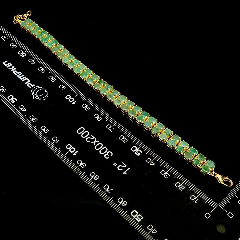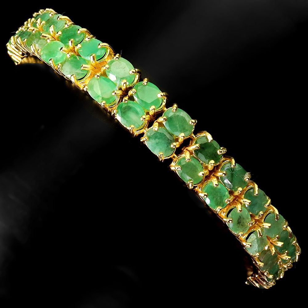 EMERALD BANGLE IN 14K YELLOW PLATED GOLD OVER 925 STERLING SILVER - 6.7 INCHES - APPRAISED REPLACEMENT VALUE