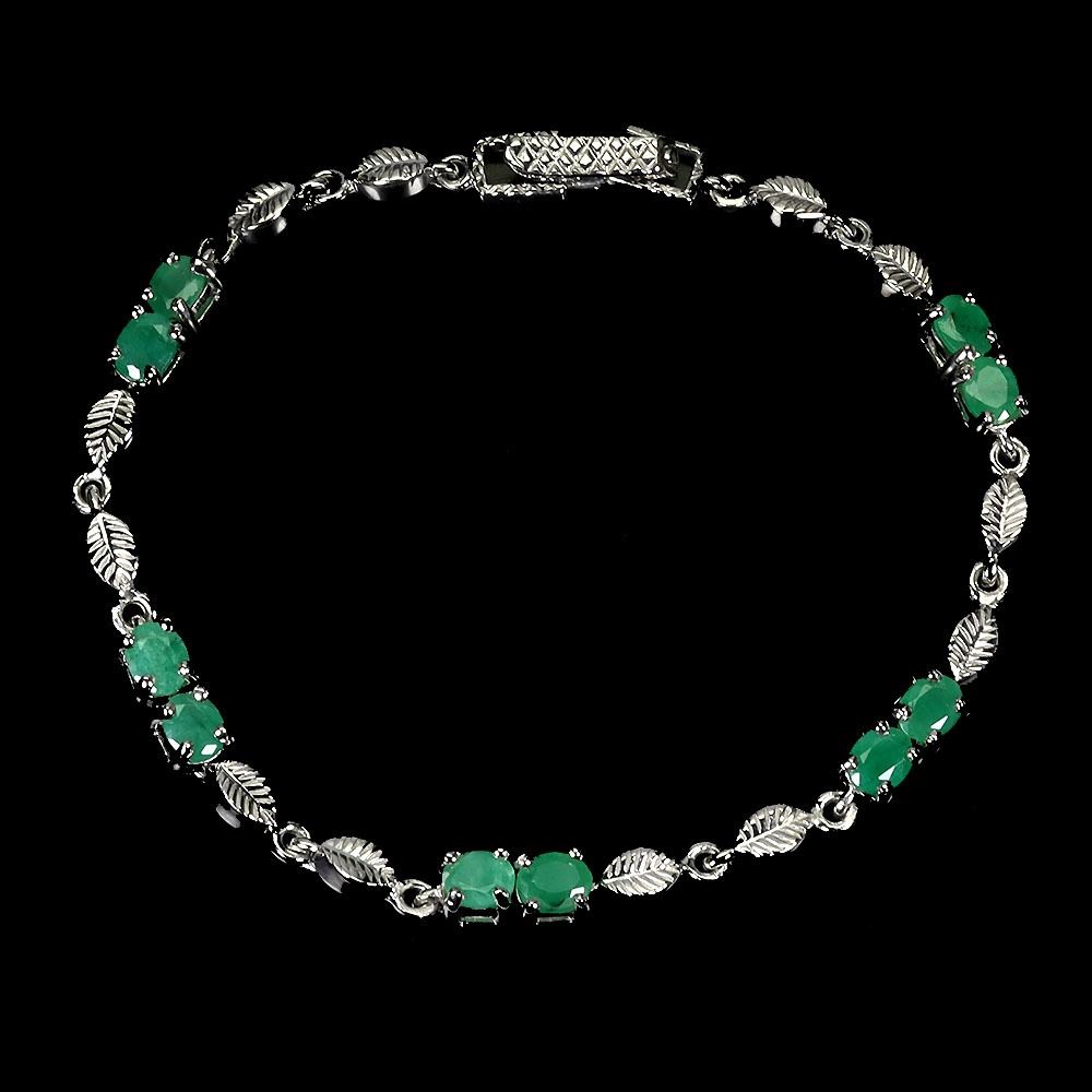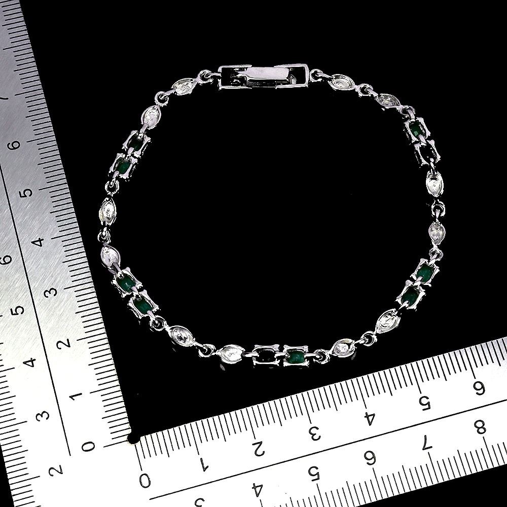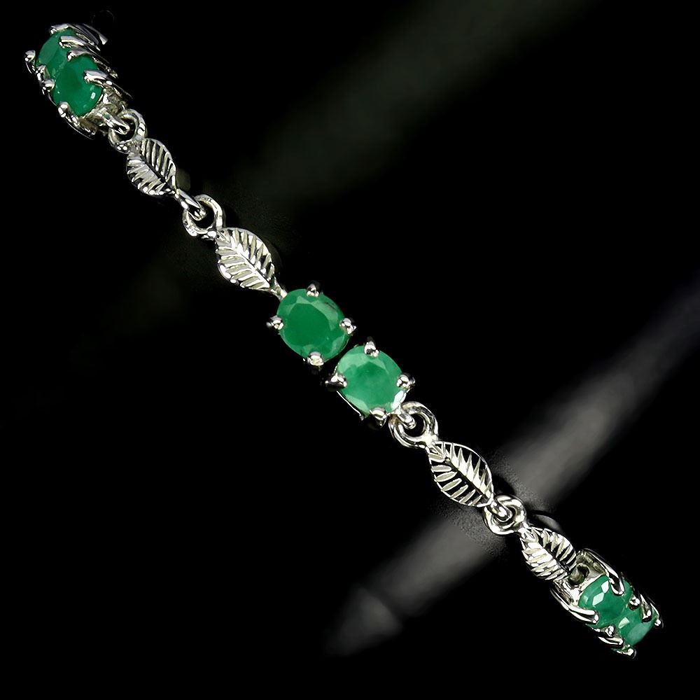 EMERALD BRACELET IN 14K WHITE PLATED GOLD OVER 925 STERLING SILVER - 7.5 INCHES -APPRAISED REPLACEMENT VALUE