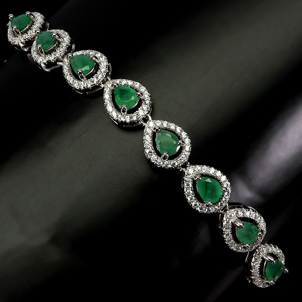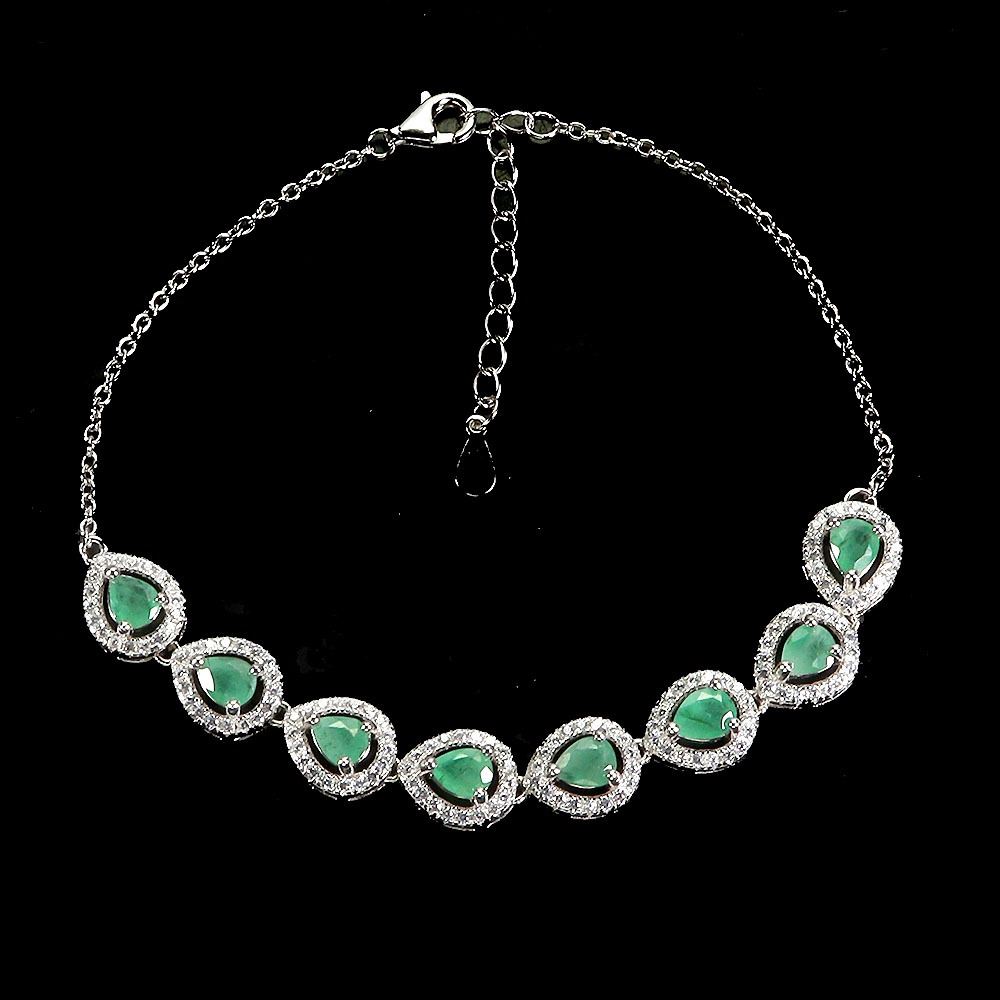 EMERALD BRACELET IN 14K WHITE PLATED GOLD OVER 925 STERLING SILVER - 7.5 INCHES LONG - APPRAISED REPLACEMENT VALUE