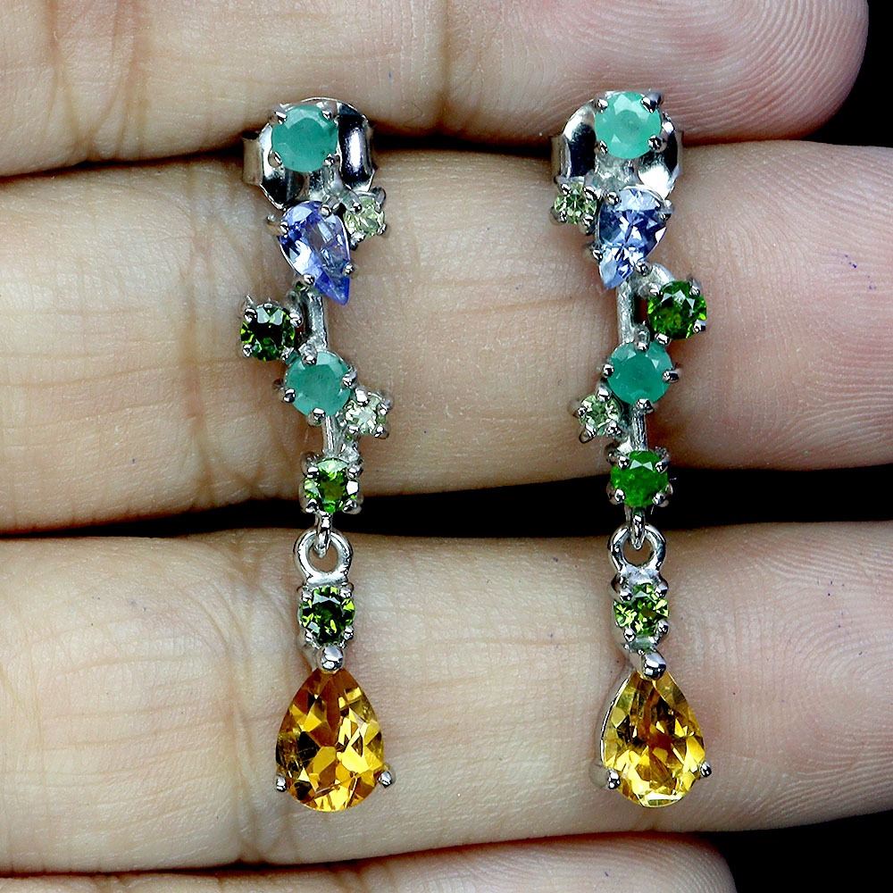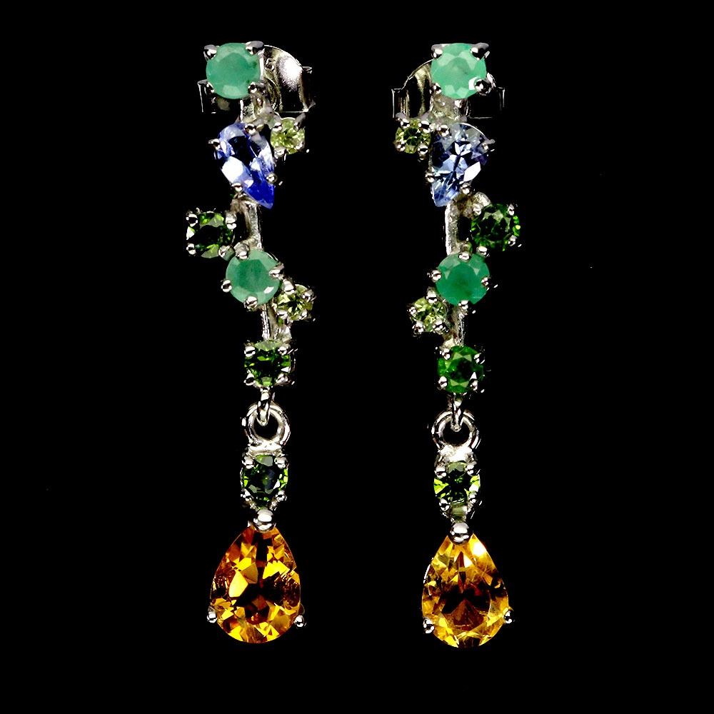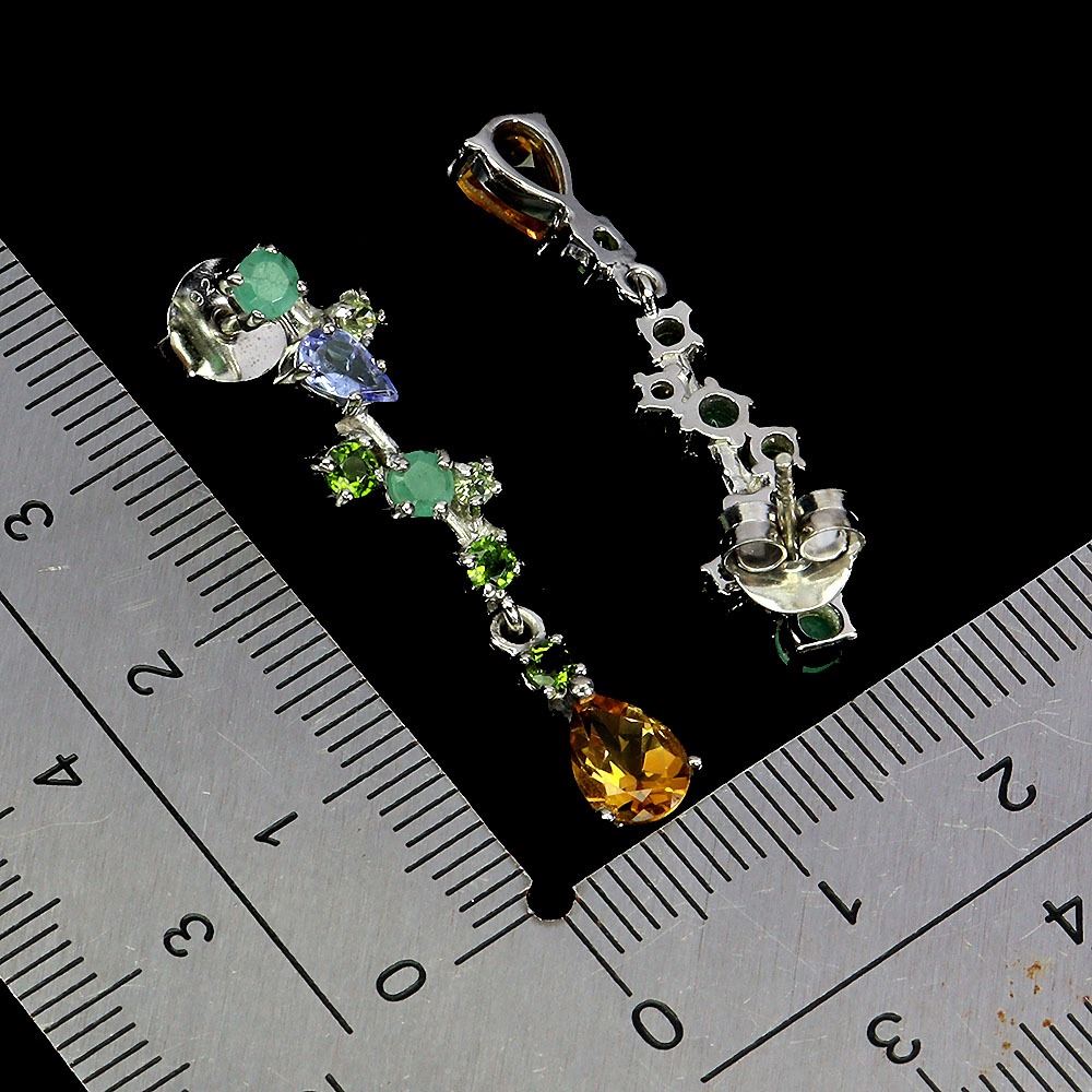 EMERALD, CITRINE AND PERIDOT EARRINGS IN 14K WHITE PLATED GOLD OVER 925 STERLING SILVER - APPRAISED