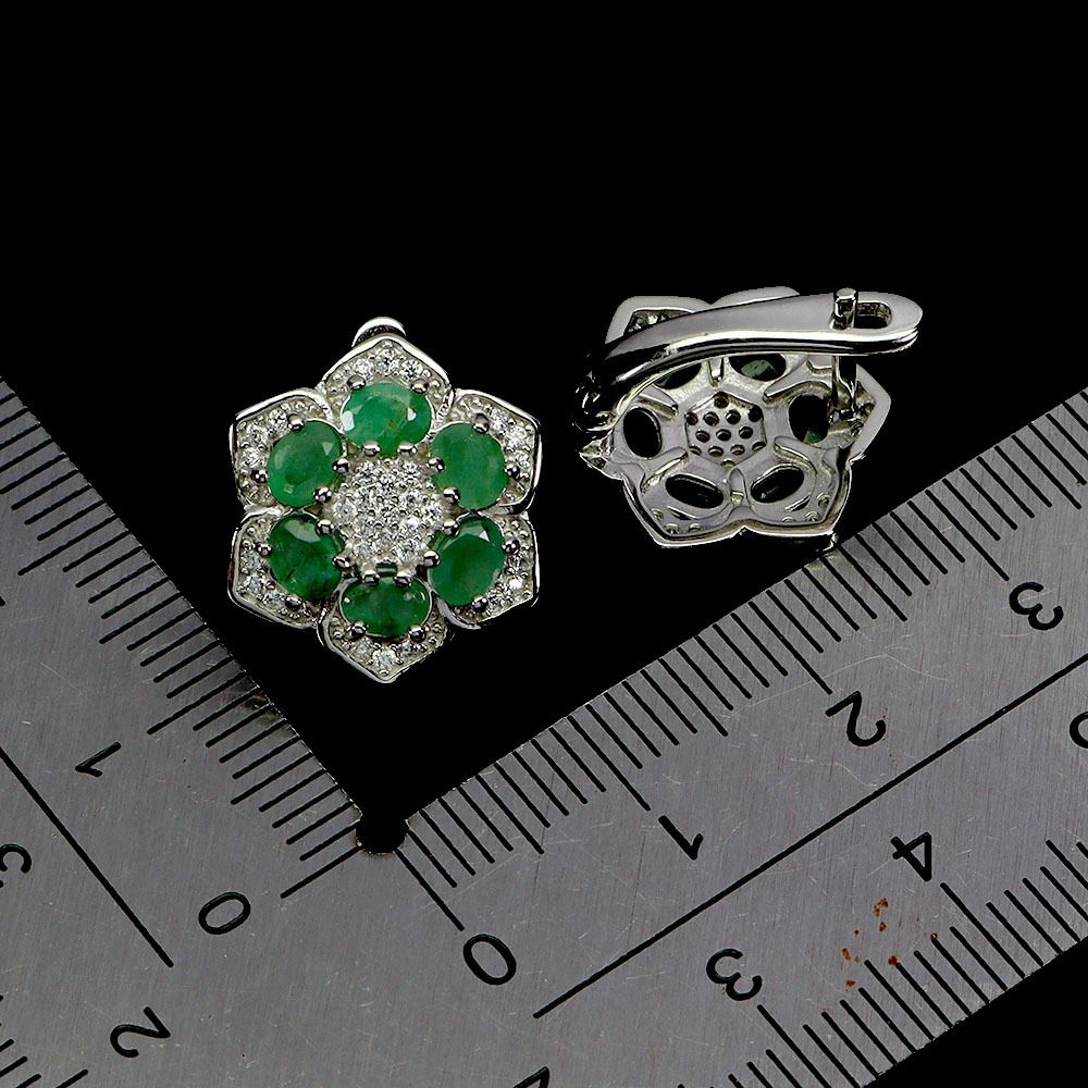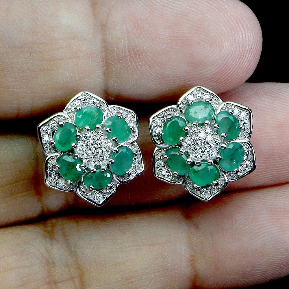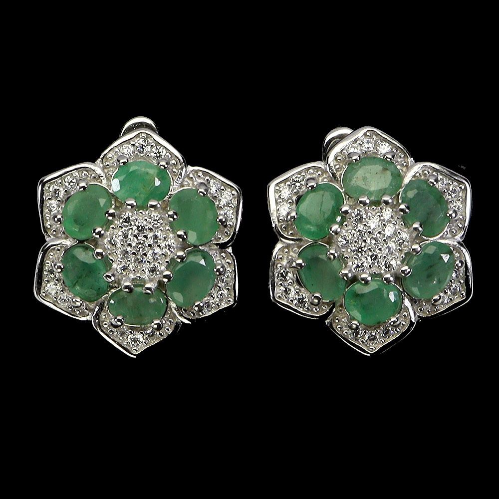 EMERALD EARRINGS IN 14K WHITE PLATED GOLD OVER 925 STERLING SILVER - APPRAISED REPLACEMENT VALUE