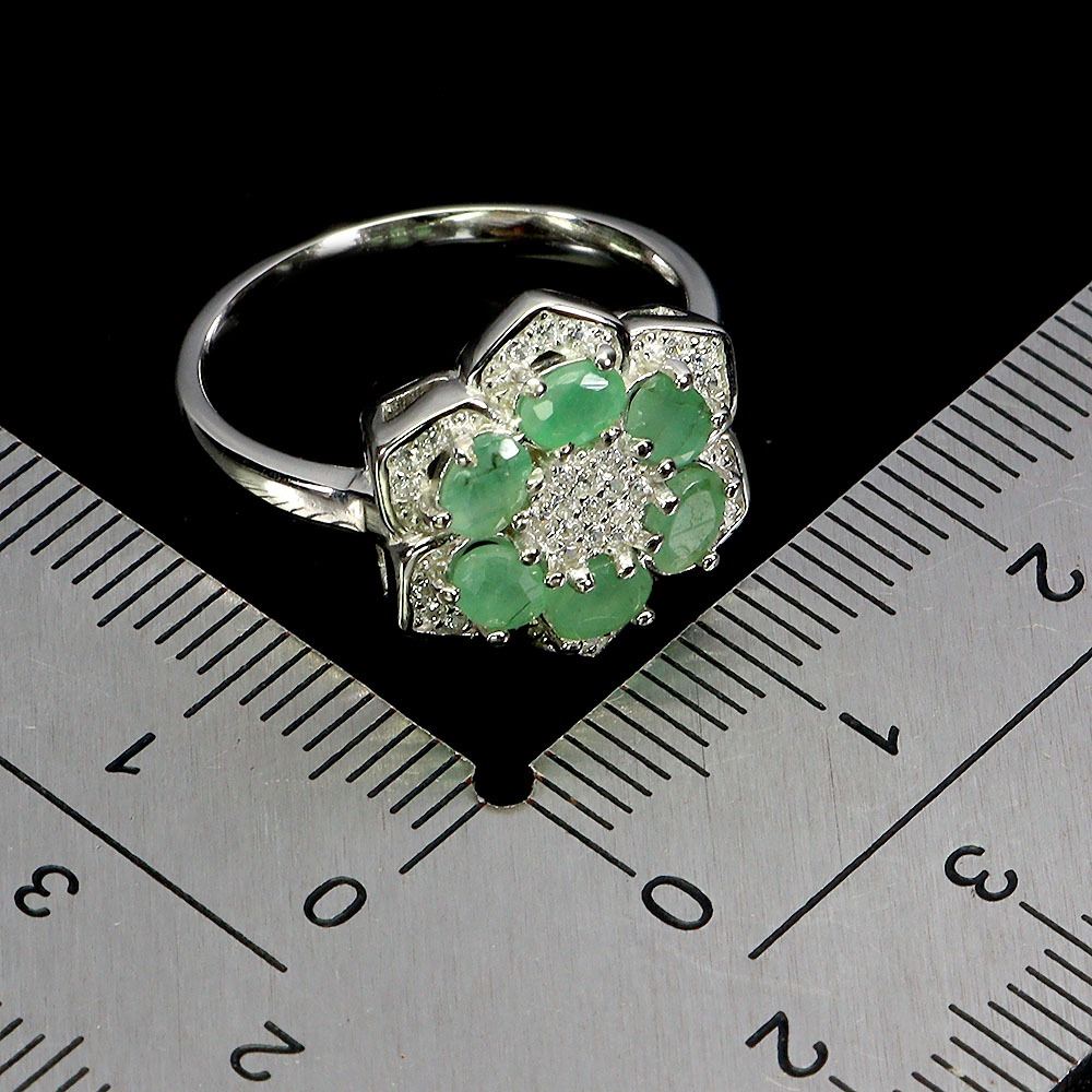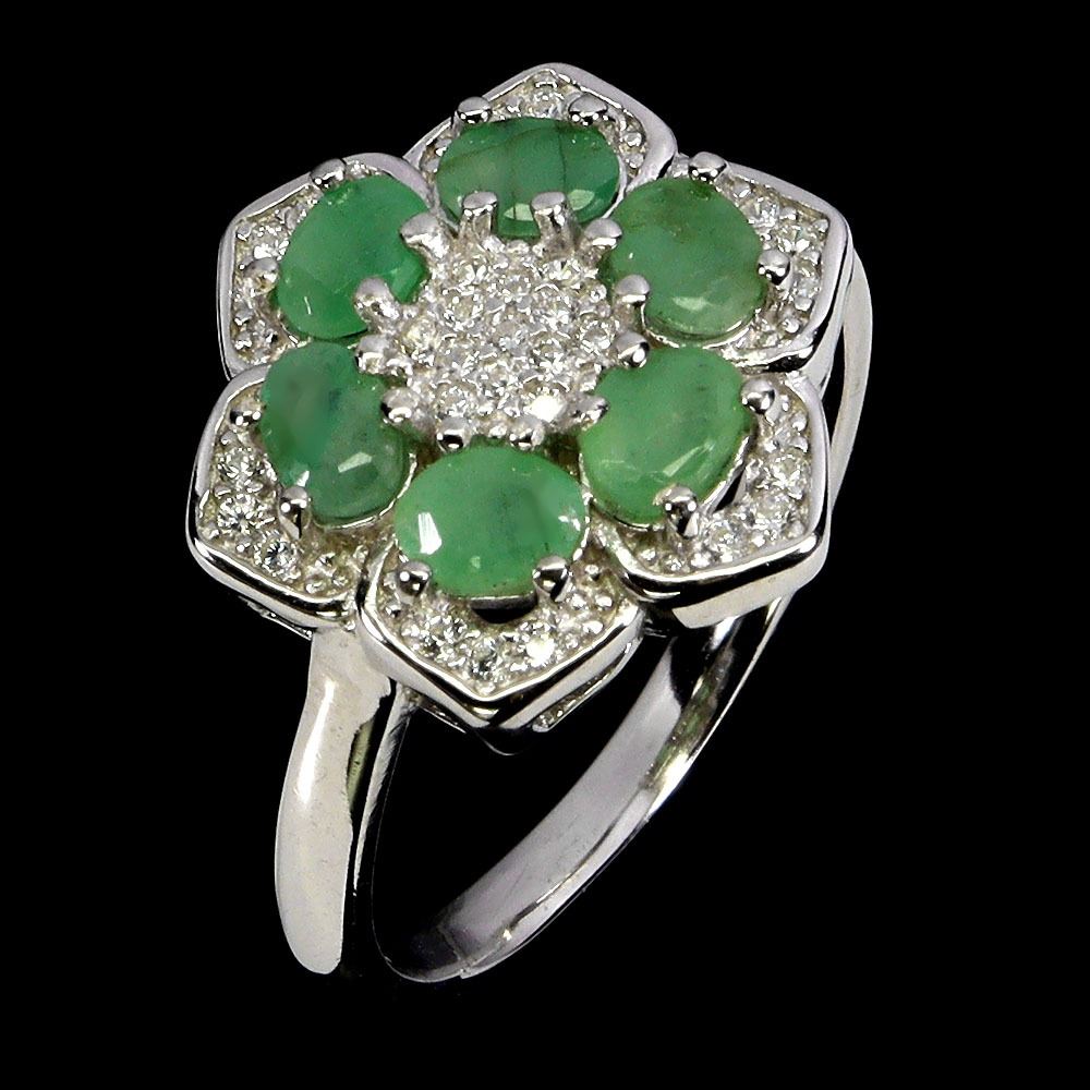 EMERALD RING EMERALD IN 14K WHITE PLATED GOLD OVER 925 STERLING SILVER - SIZE 7 - APPRAISED REPLACEMENT VALUE