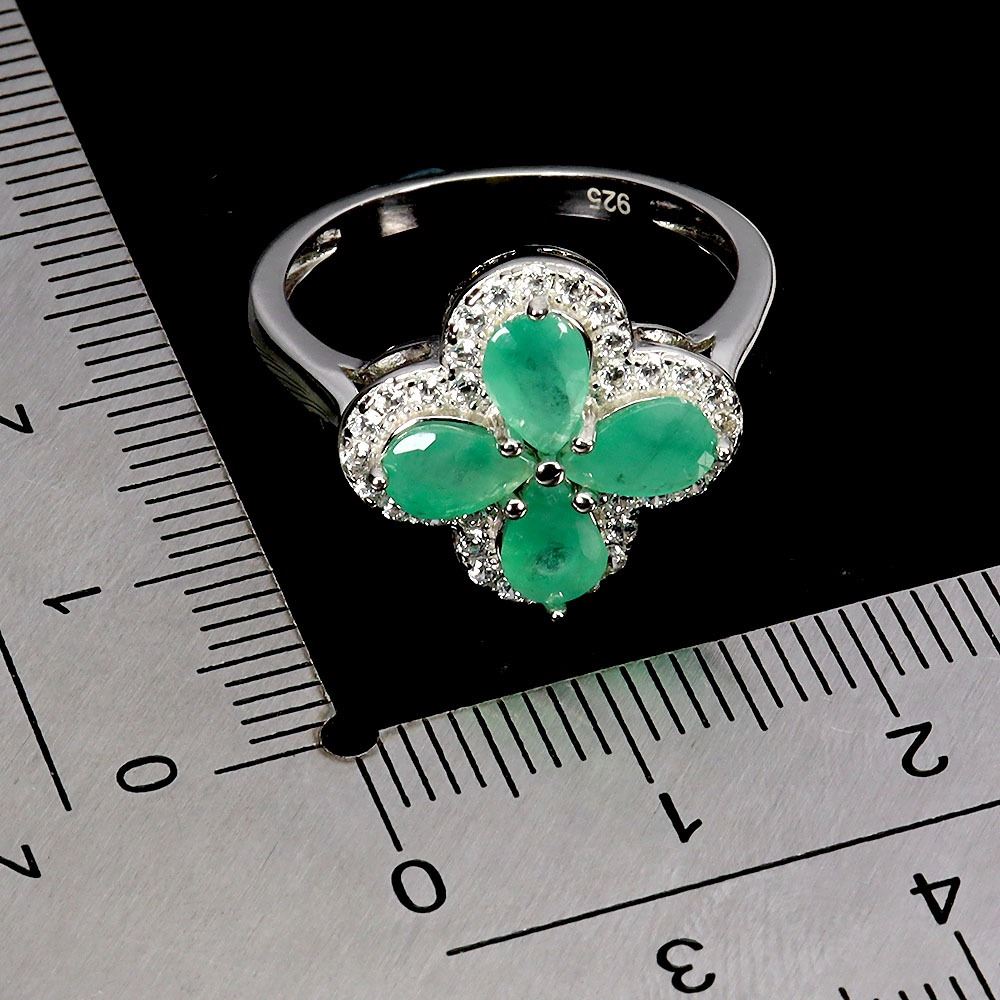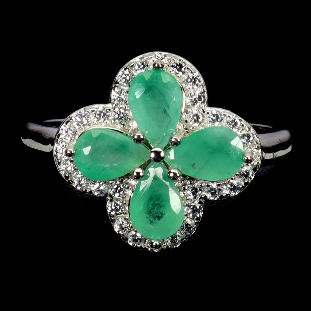 EMERALD RING IN 14K WHITE PLATED GOLD OVER 925 STERLING SILVER - SIZE 7 - APPRAISED REPLACEMENT VALU