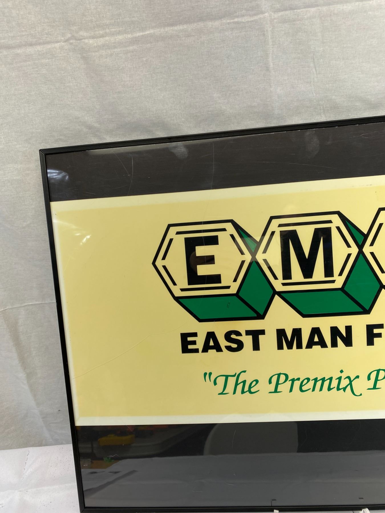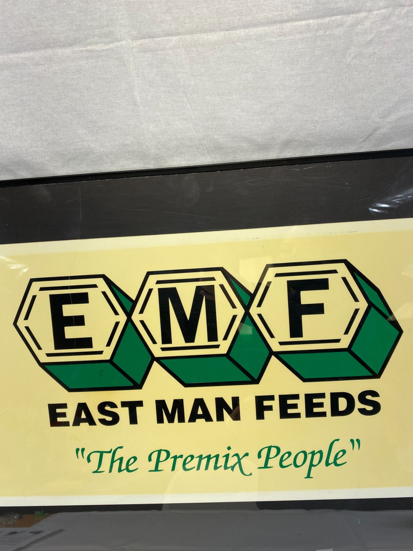 EMT East Man Feeds "The Premix People" Sign, 12"x27", Nice Shape