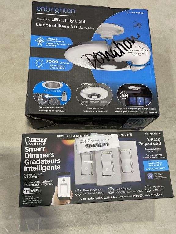 ENBRIGHTEN ADJUSTABLE LED UTILITY LIGHT AND FEIT PACK OF SMART DIMMERS