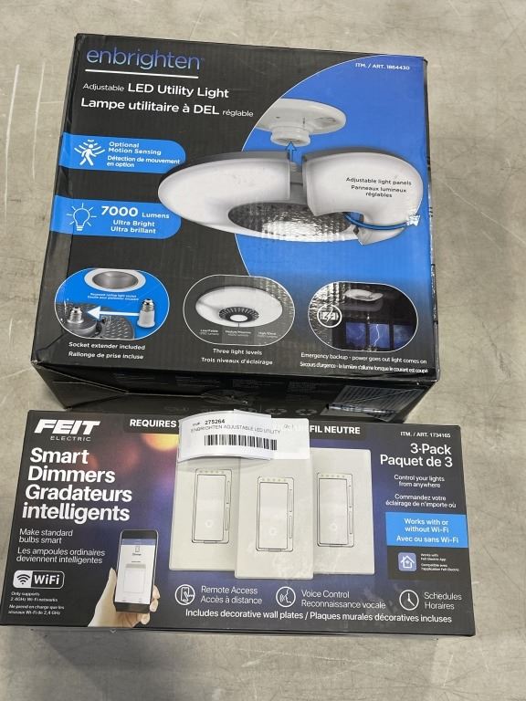 ENBRIGHTEN ADJUSTABLE LED UTILITY LIGHT AND FEIT PACK OF SMART DIMMERS