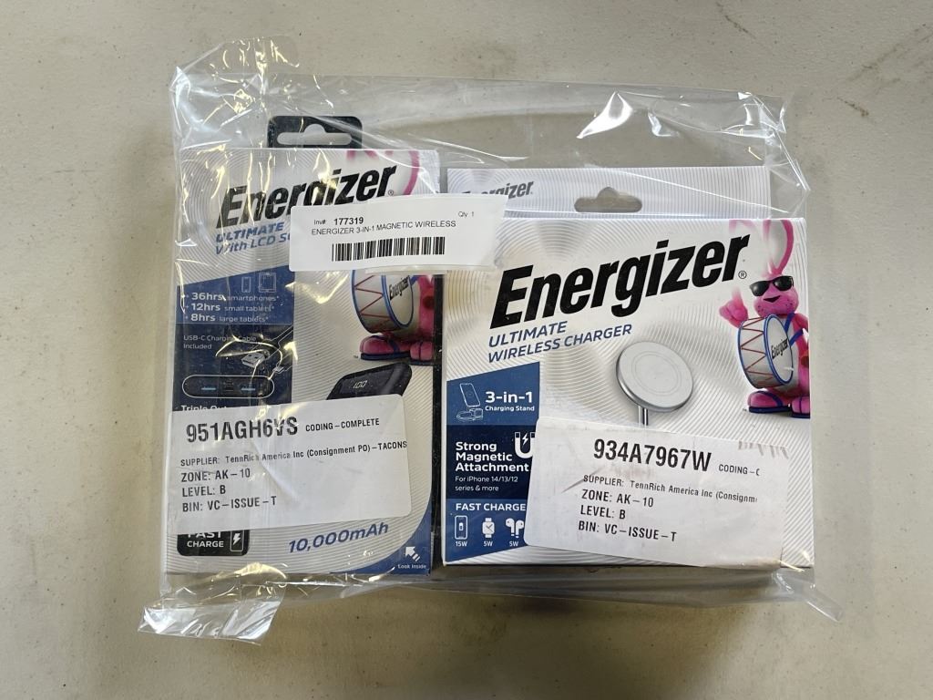 ENERGIZER 3-IN-1 MAGNETIC WIRELESS CHARGING STAND AND ENGERGIZER 10,000 MAH POWER BANK - TOTAL RETAIL $129