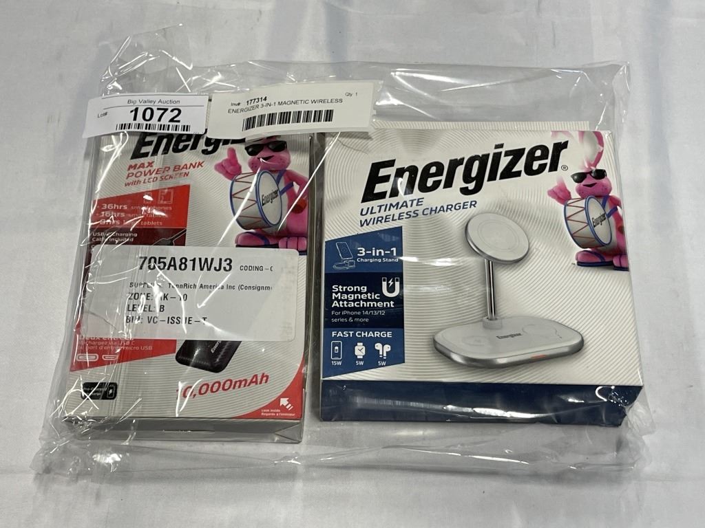 ENERGIZER 3-IN-1 MAGNETIC WIRELESS CHARGING STAND AND ENGERGIZER 10,000 MAH POWER BANK - TOTAL RETAIL $129