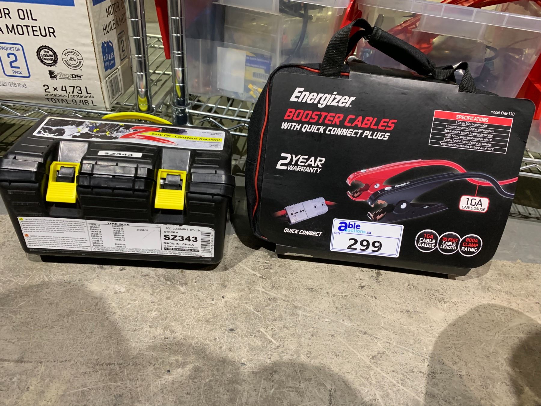 ENERGIZER BOOSTER CABLES WITH QUICK CONNECT PLUGS & ZSUPER EASY ON TIRE CHAINS