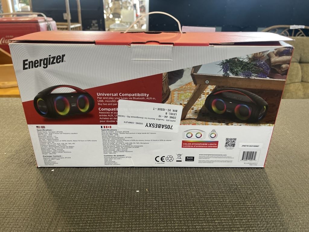 ENERGIZER BTS258 PORTABLE ALL WEATHER WIRELESS RECHARGABLE SPEAKER WITH MIC - TESTED WEORKING, RETAIL $89