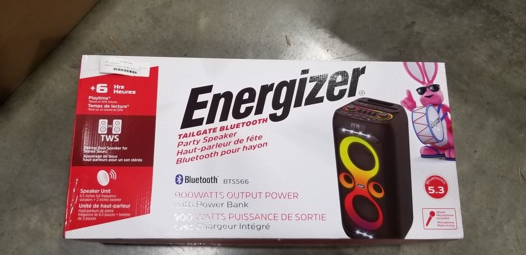 ENERGIZER BTS566 PORTABLE BLUETOOTH SPEAKER WITH WIRELESS MIC - TESTED WORKING, RETAIL $199