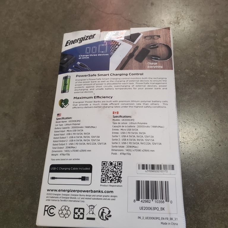 ENERGIZER FAST CHARGING POWER BANK, 20,000MAH
