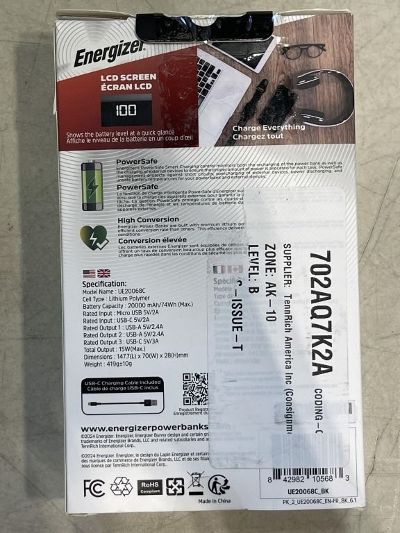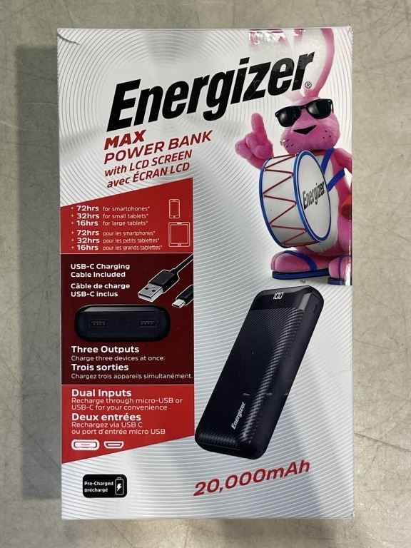 ENERGIZER MAX POWER BANK WITH LCD SCREEN, 20,000MAH