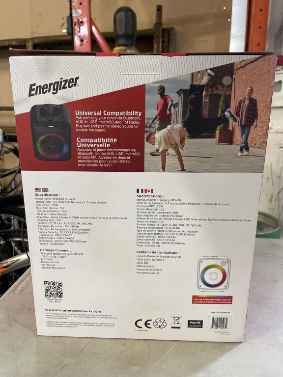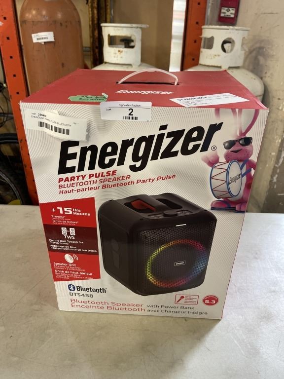 ENERGIZER PARTY PULSE BLUETOOTH SPEAKER WITH POWER BANK AND WIRED MIC - TESTED WORKING, RETAIL $129