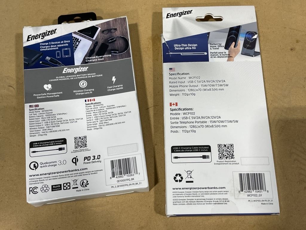ENERGIZER POWER BANK WITH LCD SCREEN, 10,000MAH AND WIRELESS FOLDING CHARGER