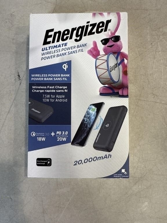 ENERGIZER ULTIMATE WIRELESS POWER BANK WITH WIRELESS FAST CHARGE QI AND 20,000MAH