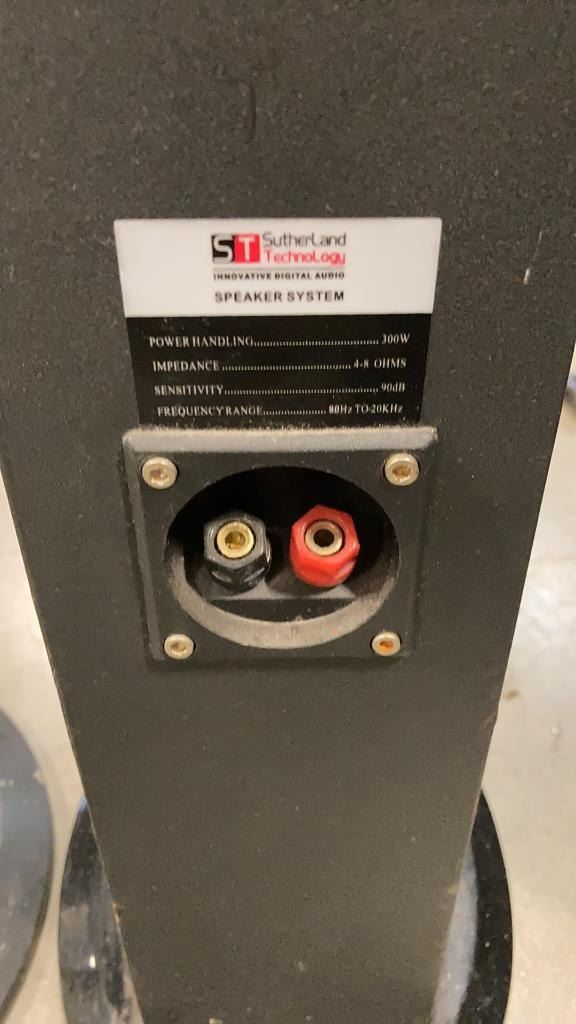 ENERGY ESW-8 POWERED SUBWOOFER WITH 2 SUTHERLAND 300W TOWER SPEAKERS AND 2 ONKYO SKM 750-XS FLOOR SPEAKERS ALL WORKING