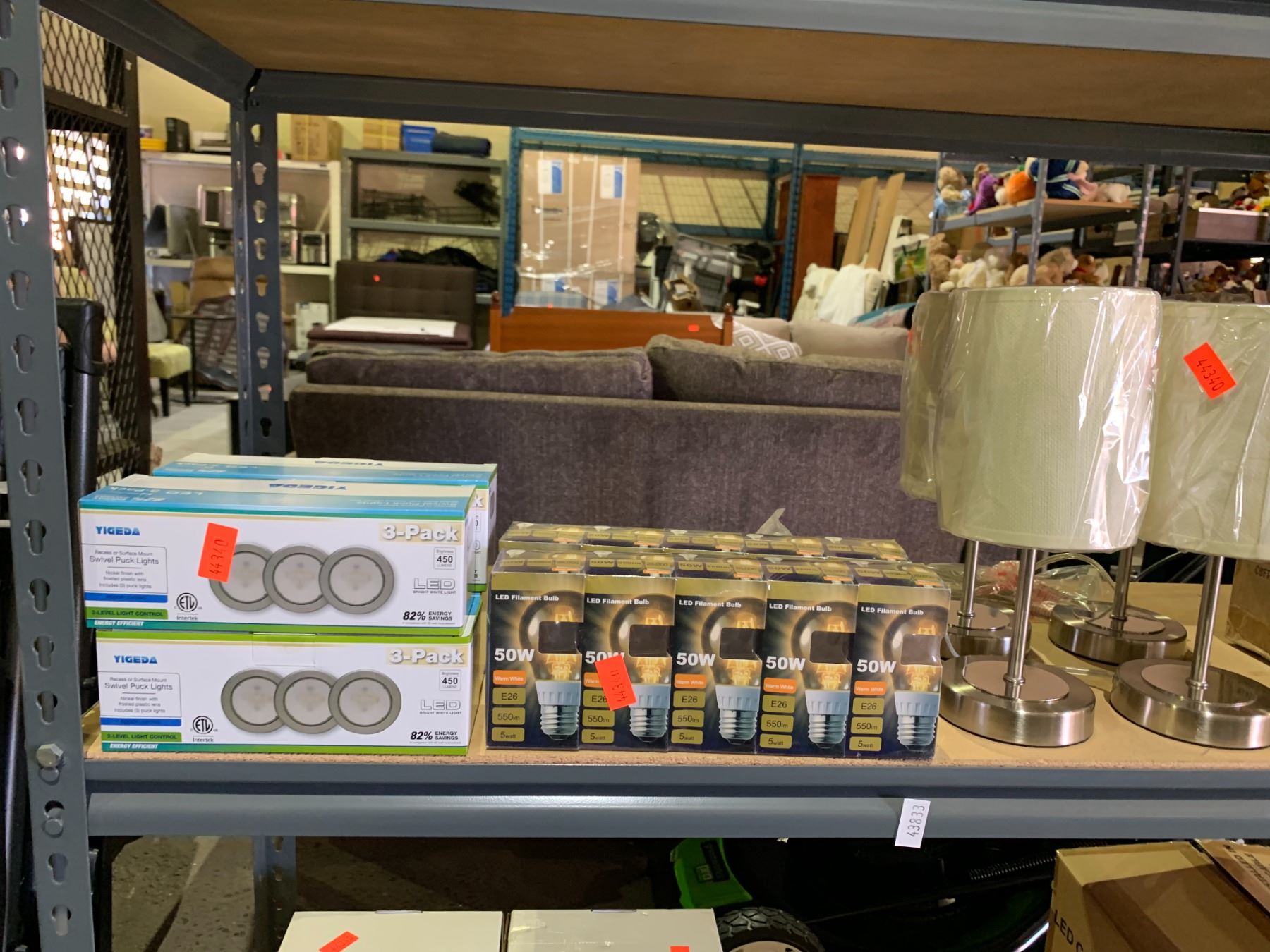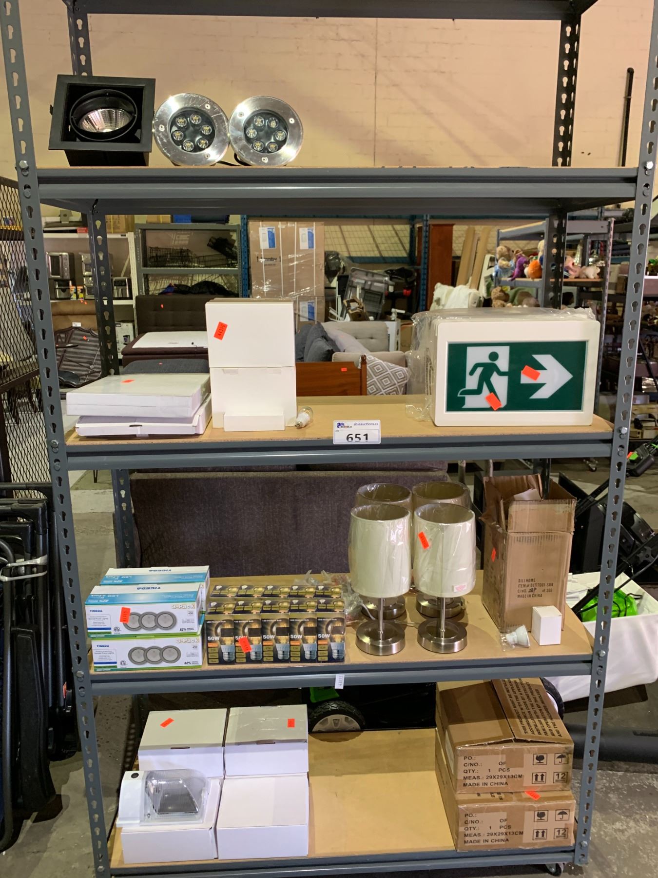 ENTIRE RACK (RACK NOT INCLUDED) OF ASSORTED LIGHTING, LAMPS, AND MORE