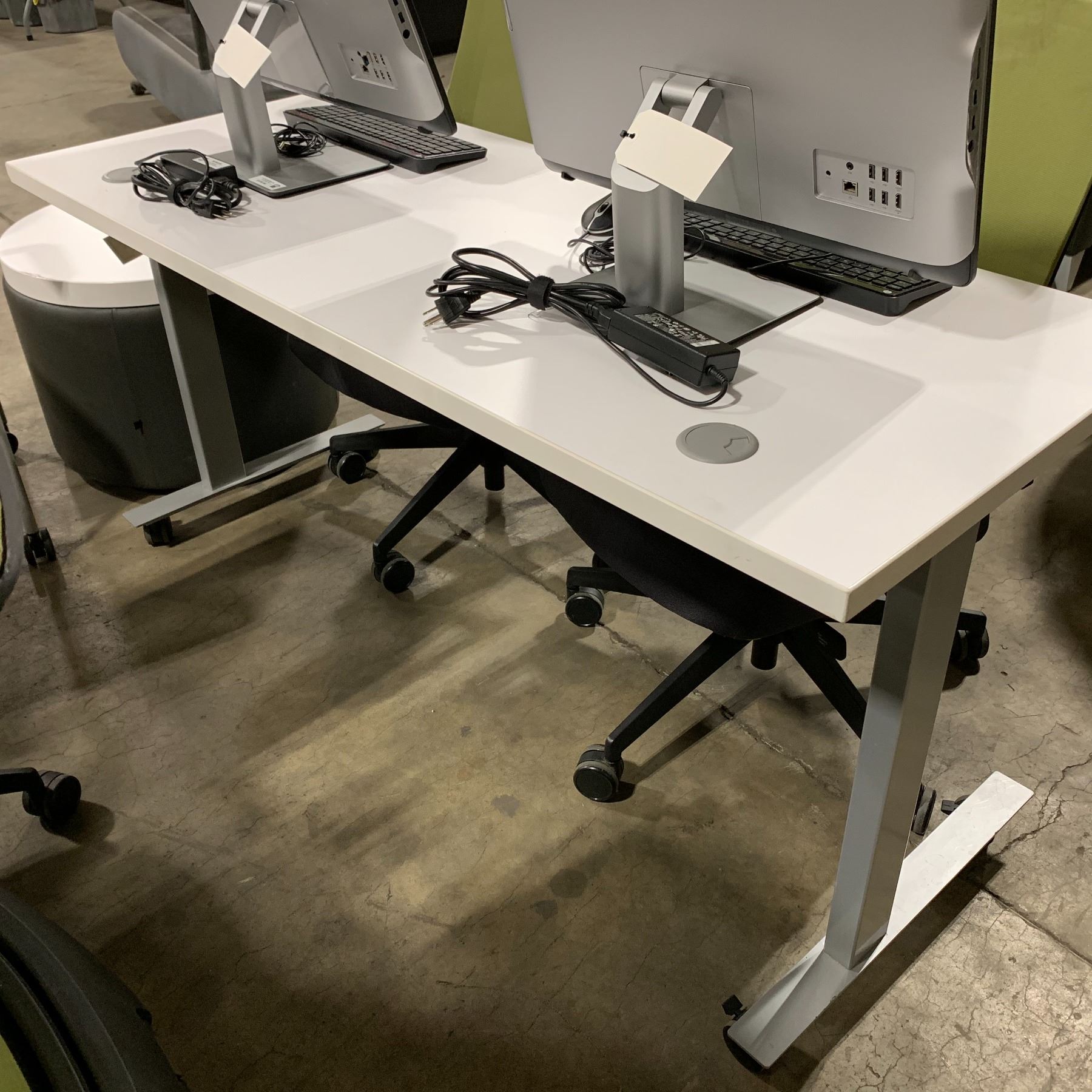 ENWORK WHITE 60"W X 24"D X 29"H COMMERCIAL MOBILE 2 STATION WORK CENTER WITH CABLE ACCESS