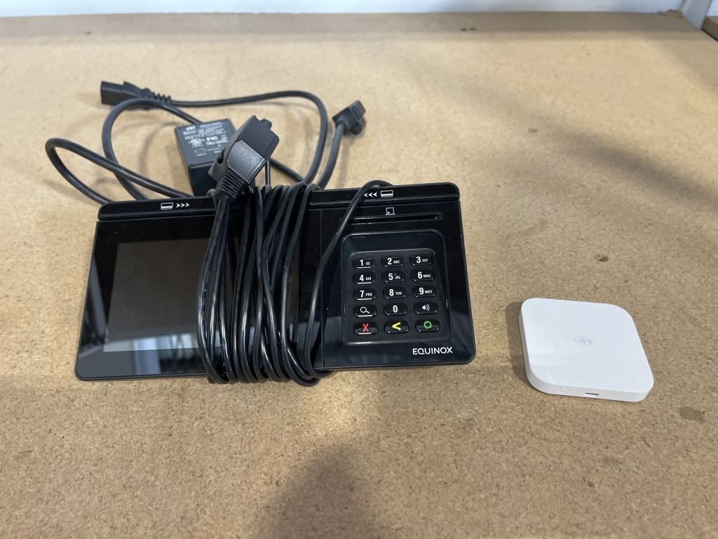 EQUINOX POS TERMINAL WITH TOUCH SCREEN AND CHIP CARD FEATURE, MODEL LUXE 8500I AND SQUARE READER