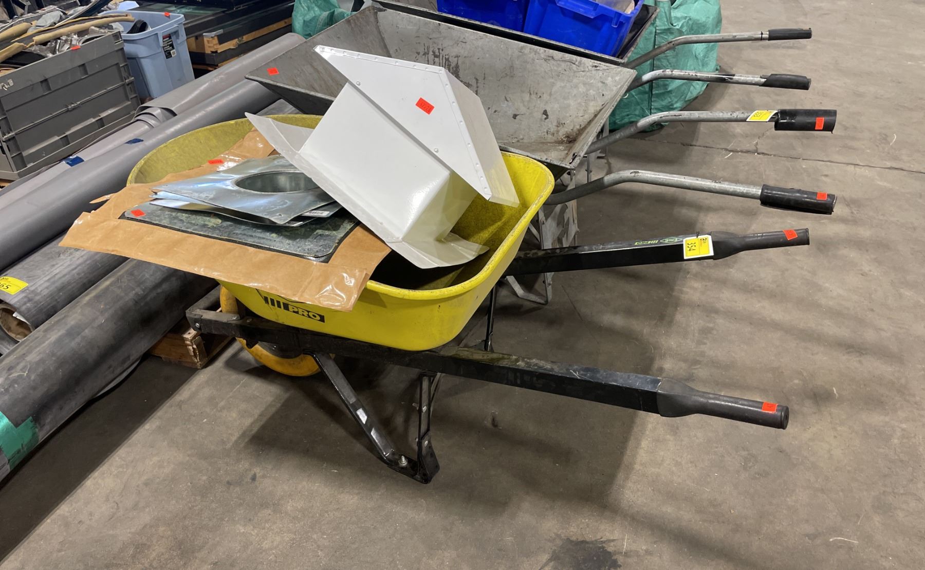 ERIE PRO YELLOW INDUSTRIAL WHEELBARROW WITH ASSORTED VENTING CONTENTS