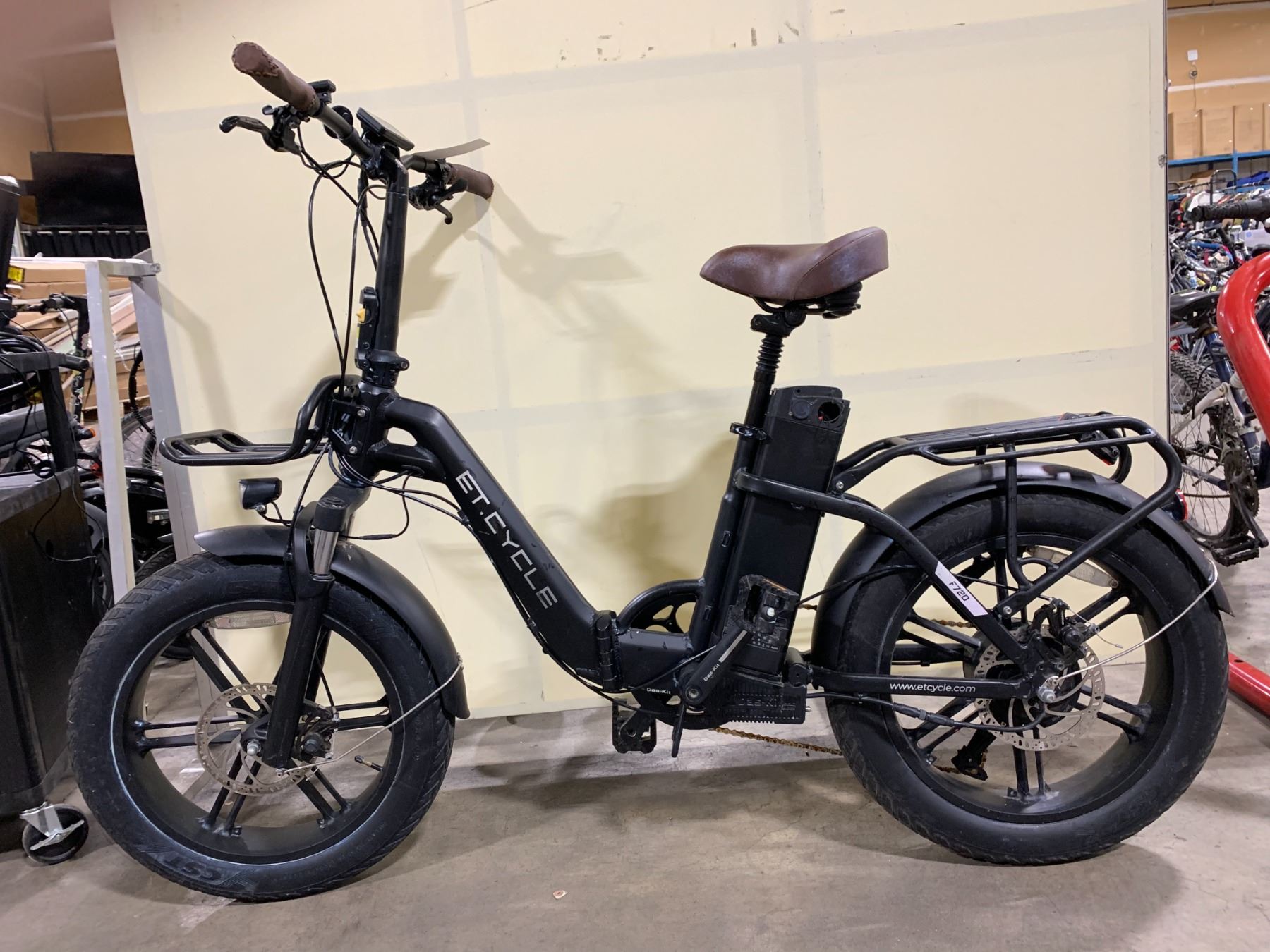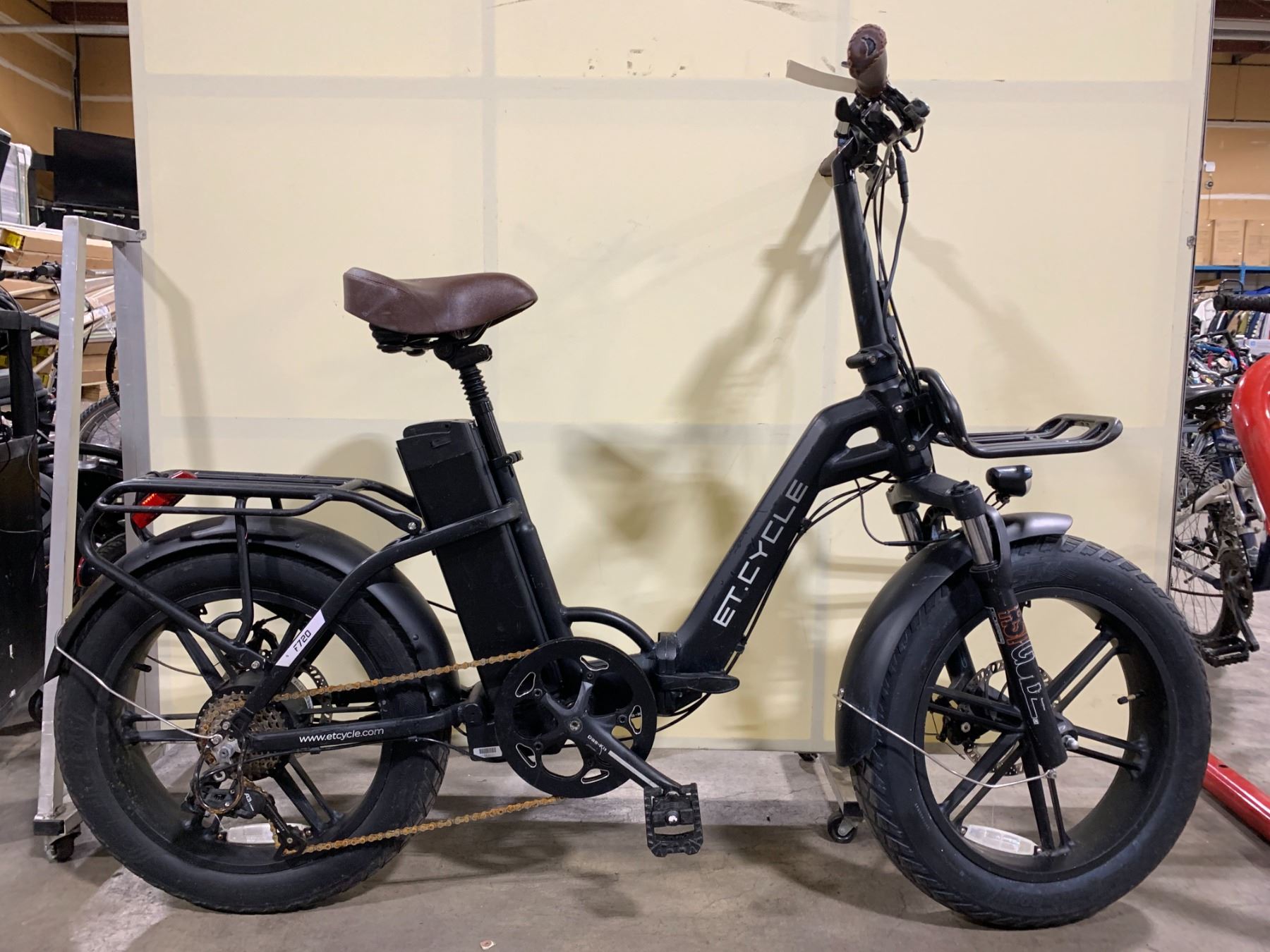 ET CYCLE F720 BLACK 8 SPEED FRONT SUSPENSION FOLDING BIKE WITH FULL DISC BRAKES *NO KEY, NO CHARGER*