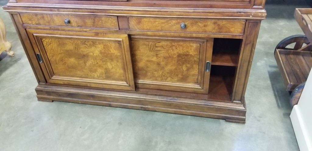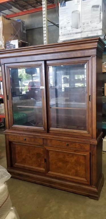 ETHAN ALLEN 2PC GLASS SLIDING DOOR DISPLAY CABINET