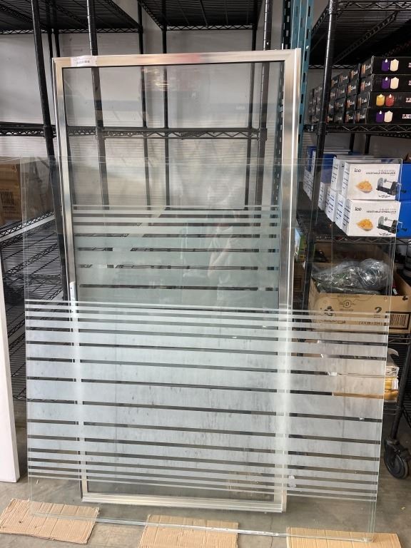 ETHCED GLASS SHOWER DOOR AND SIDE PANEL, PANEL 51 X 53 AND DOOR IS 32 WIDE AND 65 INCH