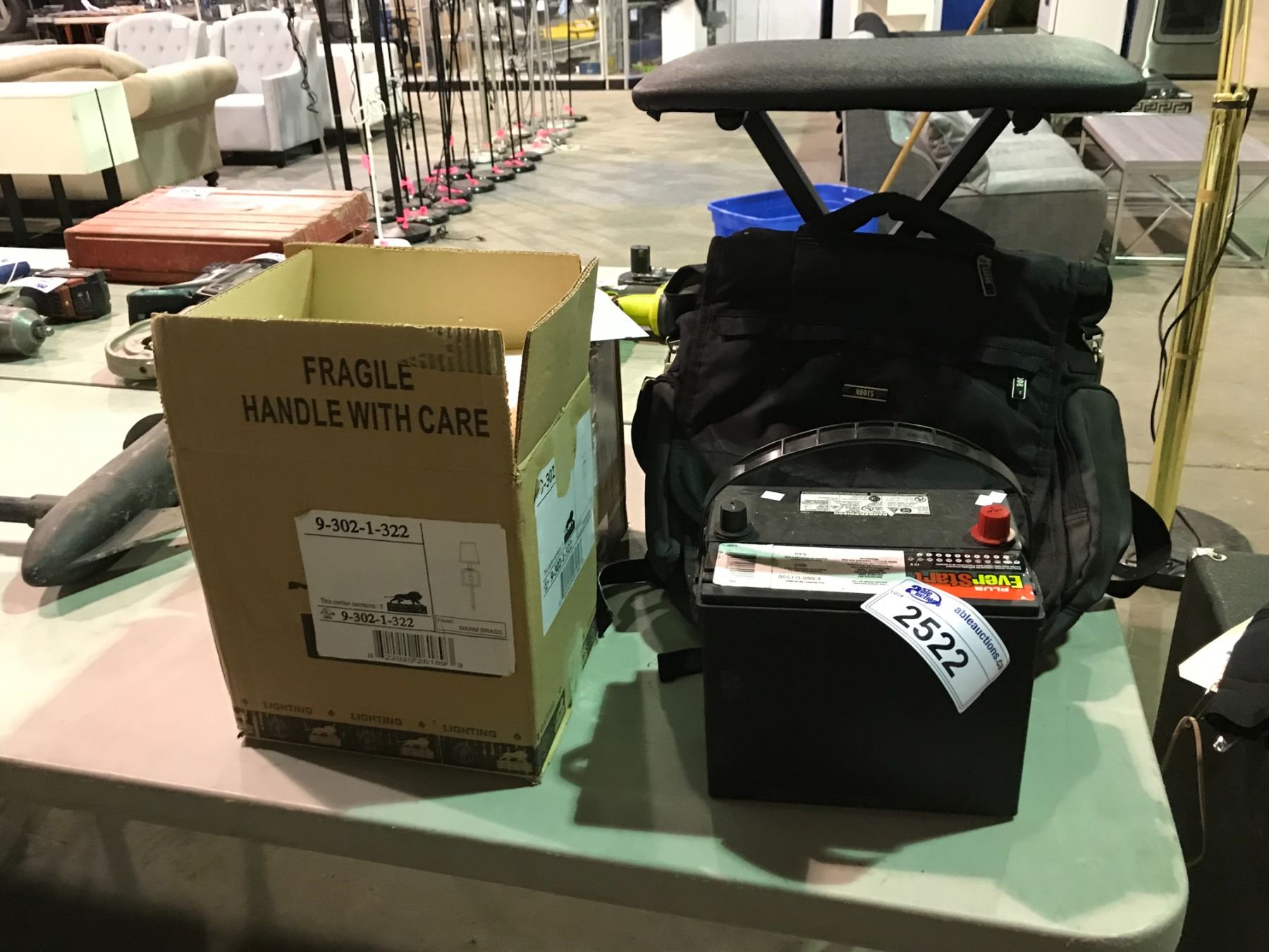 EVERSTART CAR BATTERY, ROOTS BAG, PIANO STOOL AND MORE