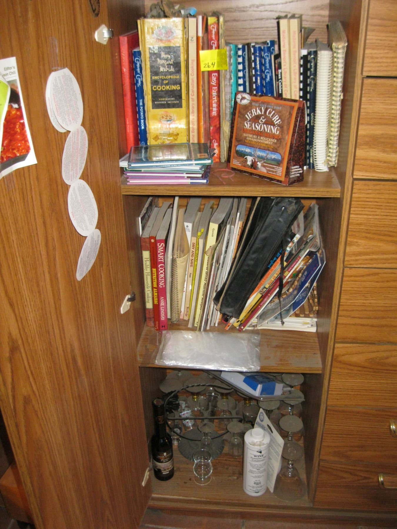 EVERYTHING INSIDE THE CUPBOARD OF THE CHEST OF DRAWERS - COOKBOOKS, ETC.